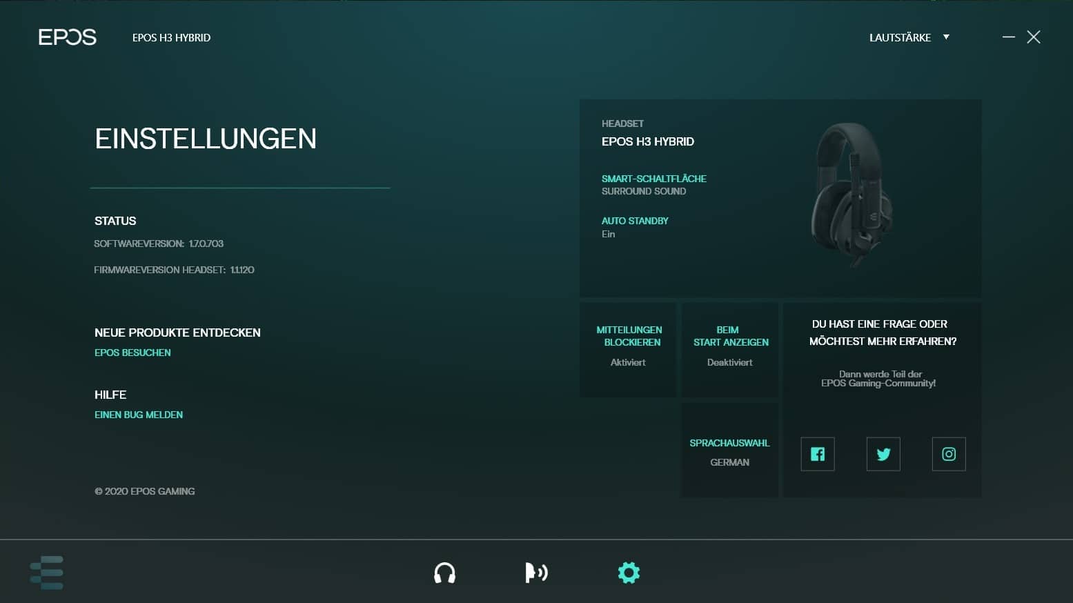 Im Gegensatz zum H3 wird das H3 Hybrid in der hauseigenen Begleit-Software EPOS Gaming Suite problemlos erkannt. Allerdings nur, wenn ihr das Headset mithilfe des im Lieferumfang befindlichen USB-Kabels verbindet.