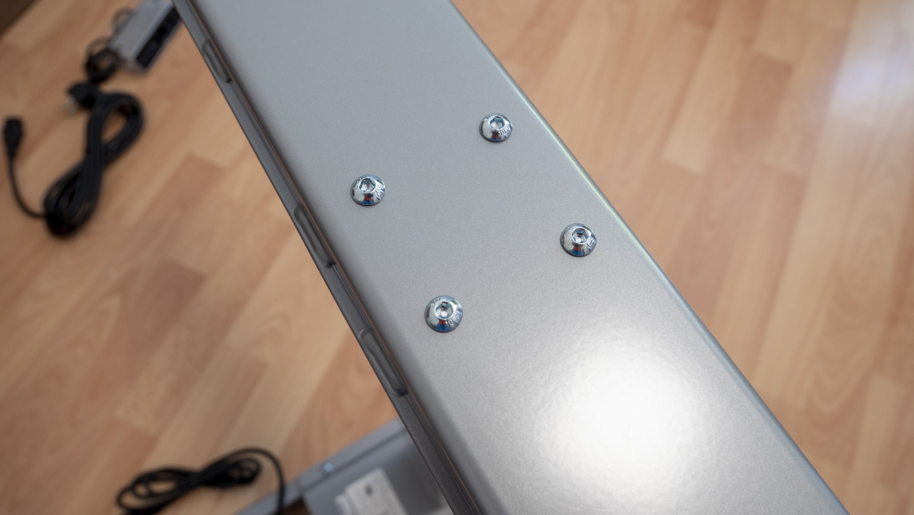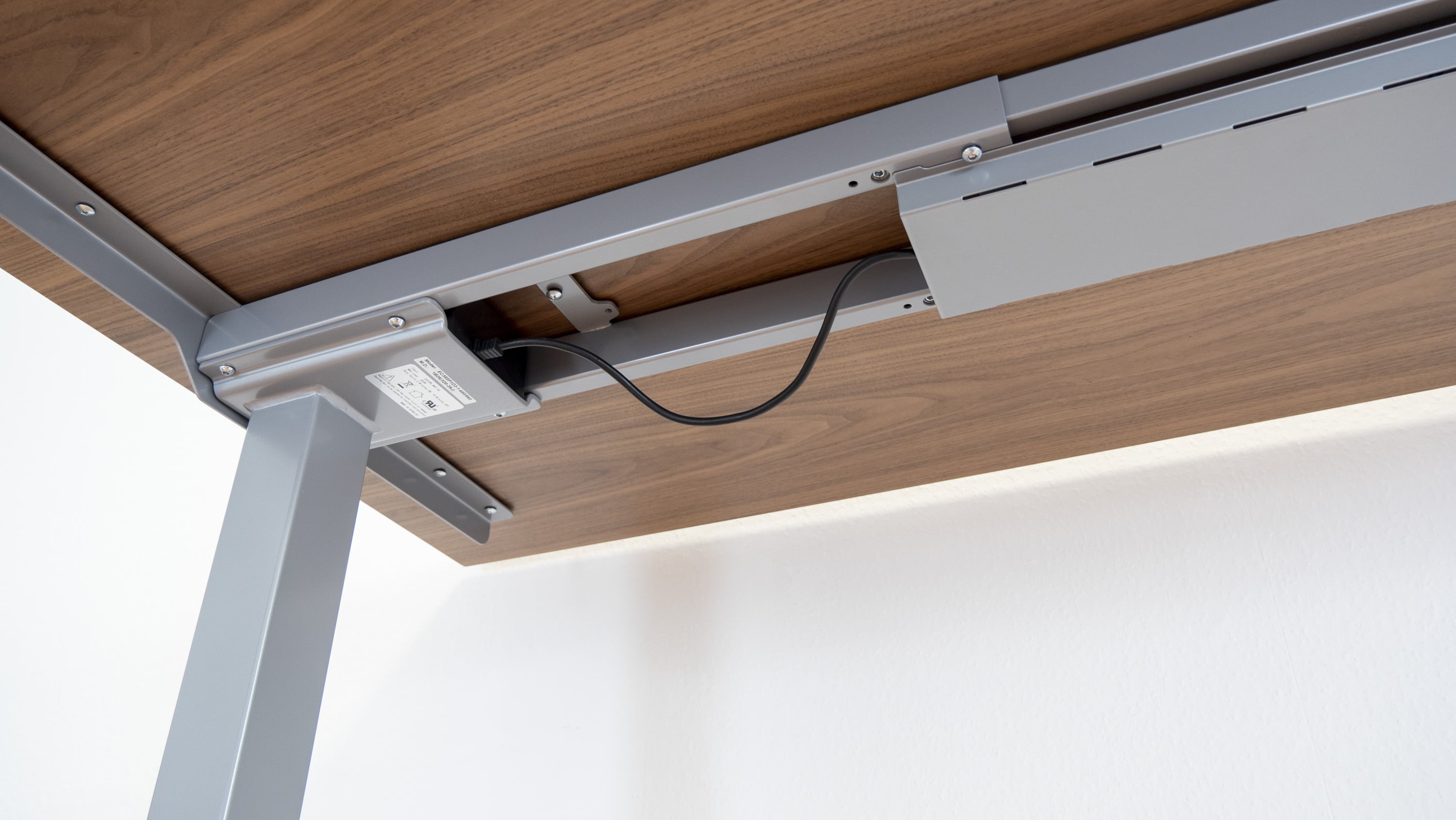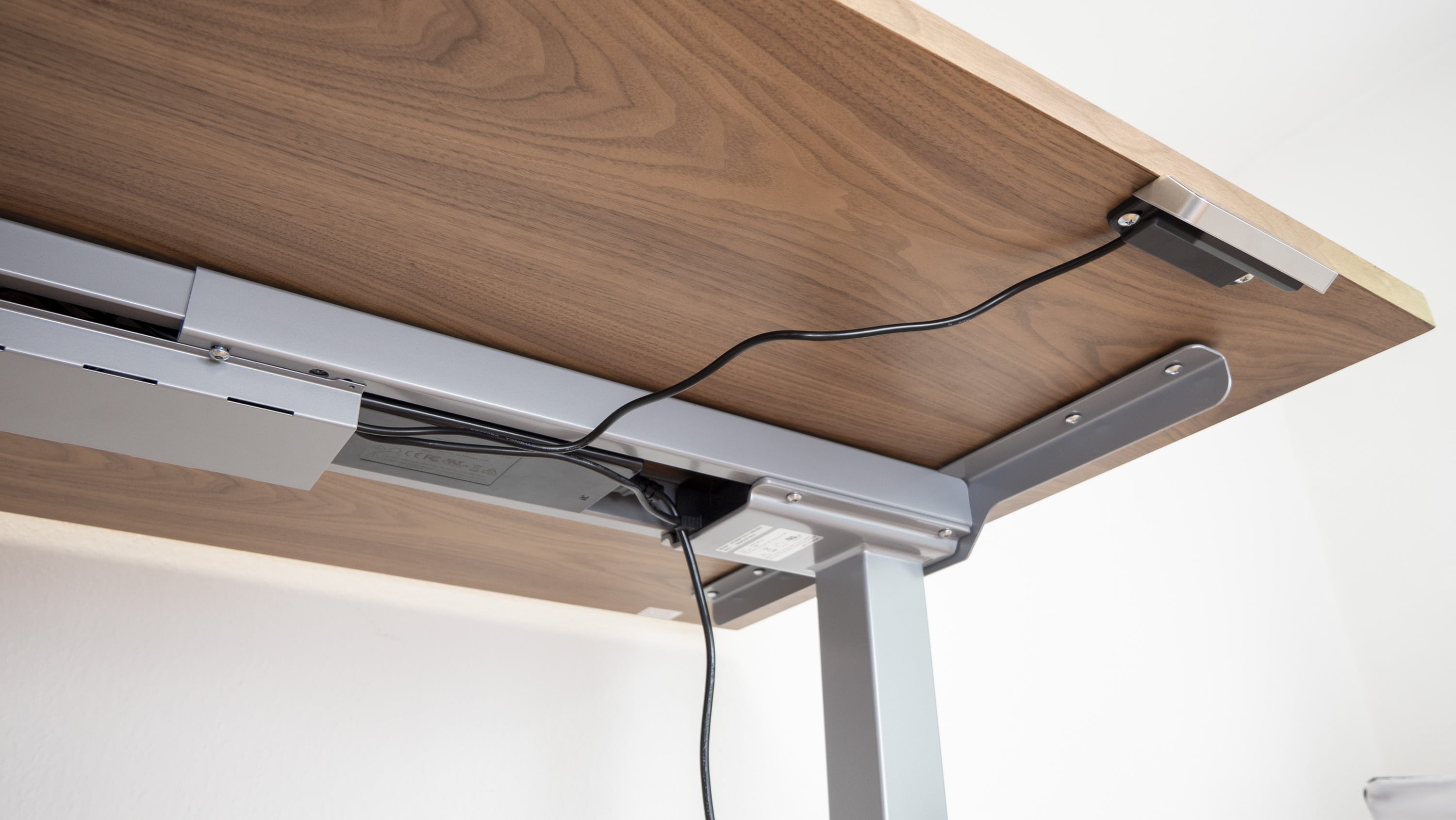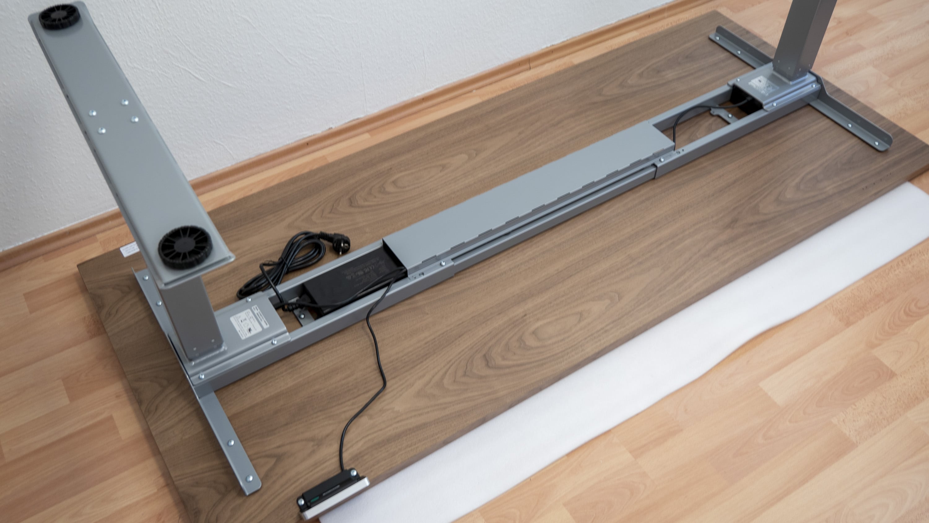 Ist der Aufbau des Gestells und der Tischplatte erledigt, muss nur noch die elektronische Steuereinheit mit den beiden Elektromotoren verbunden werden. Dieser Schritt ist im Handumdrehen erledigt. Insgesamt gelang die Montage in unserem Test damit unkompliziert, mit einem Schraubendreher und dem mitgelieferten Sechskantschlüssel. Nach etwa 20 Minuten ist man fertig, anschließend ist der Tisch mitsamt Motoren einsatzbereit.
