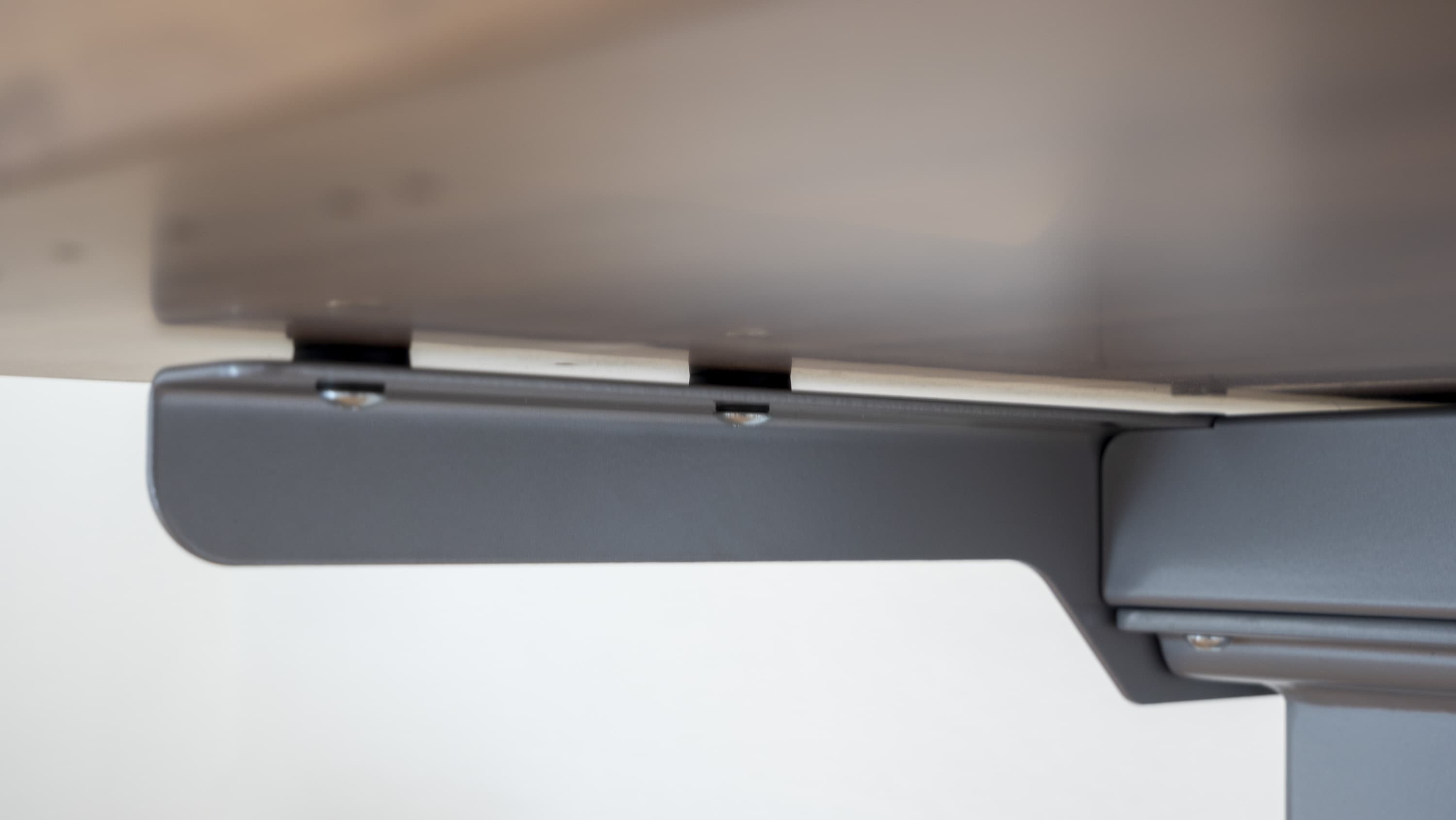 Das Metallgestell wirkte in unserem Test sehr stabil. Es bringt außerdem eine gewisse Industrial-Optik ins Büro. Verarbeitet ist es tadellos.