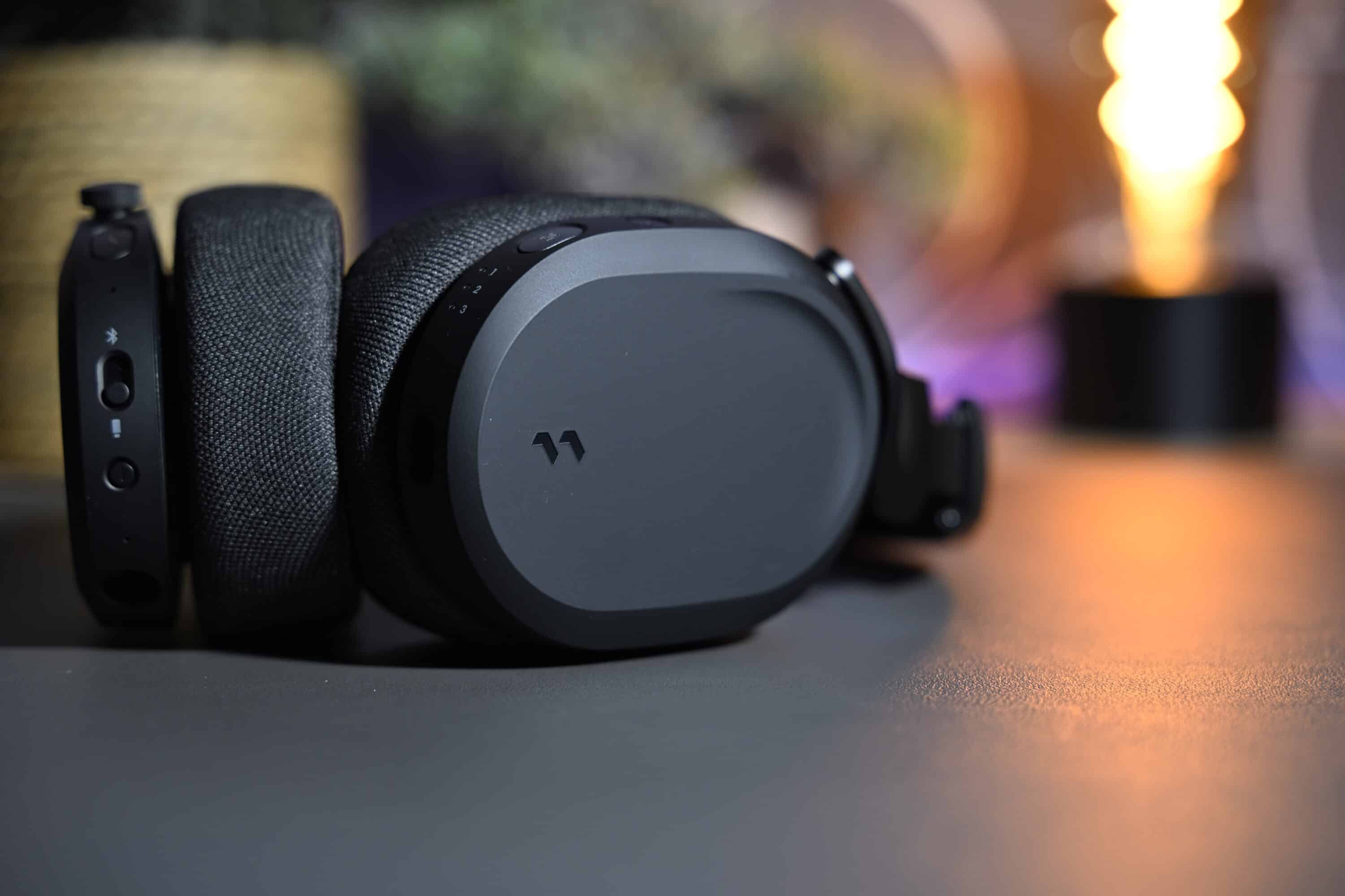 Die restliche Bedienung wird über verschiedene Buttons an beiden Seiten der Ohrmuscheln realisiert. Links findest du den Modus-Switch, der zwischen Bluetooth und Funk umschaltet, sowie den Power-Button. Außerdem gibt es hier einen zusätzlichen Mute-Schalter, um das Mikrofon stummzuschalten.