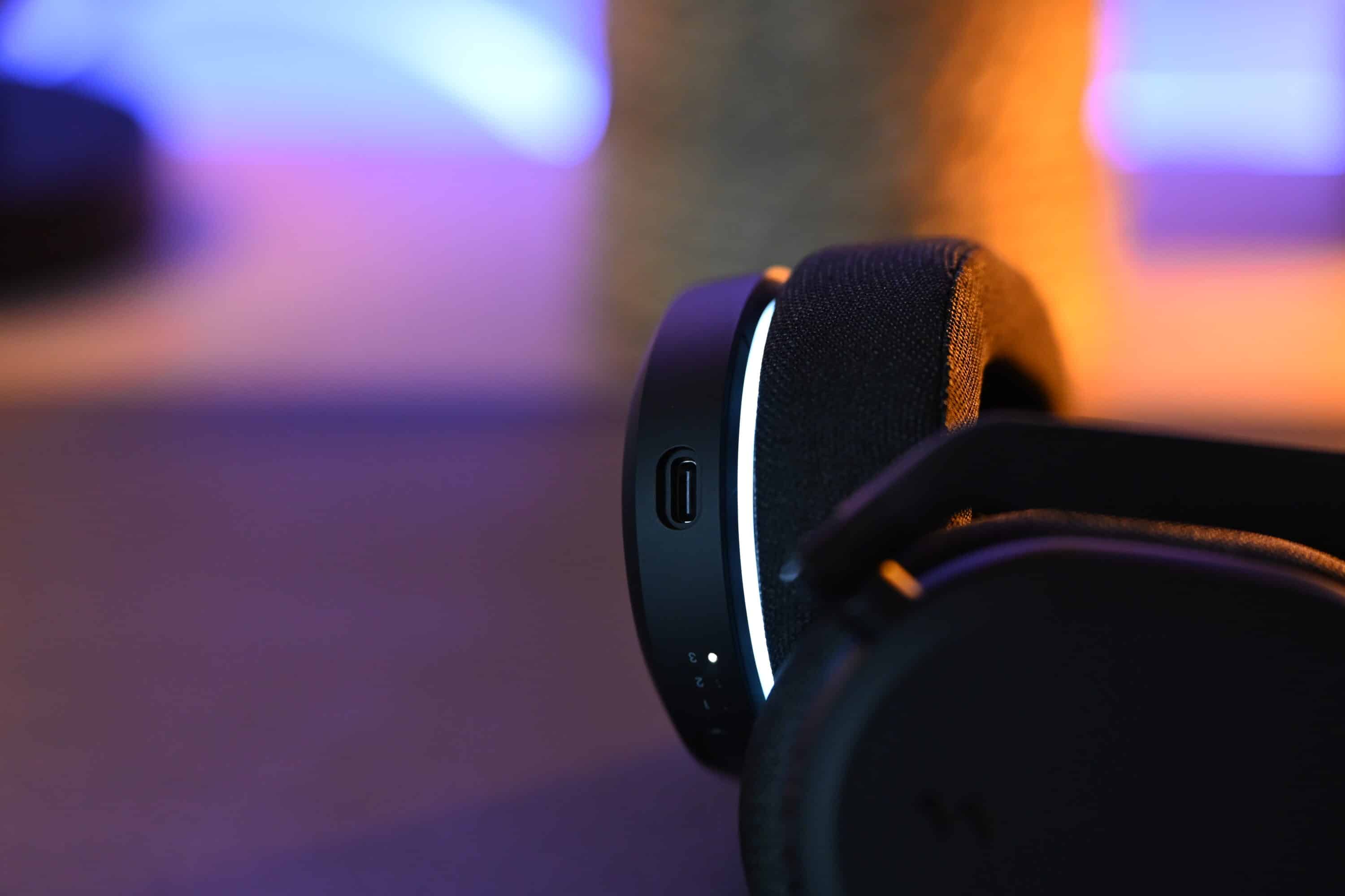 Die Akkulaufzeit des Fractal Design Scape ist gut, aber keineswegs überragend. Schaltest du die RGB-Beleuchtung aus, hält das Wireless-Headset bis zu 50 Stunden lang durch – die Laufzeit hängt aber natürlich auch stark von der eingestellten Lautstärke ab.