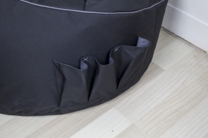 Der Sitzsack von Gamewarez verfügt über mehrere angenähte Taschen, die mit Hilfe eines Klettverschlusses an die individuellen Bedürfnisse angepasst werden können. Durch die Verstellbarkeit der angenähten Taschen können verschiedenste Gegenstände in diesen untergebracht werden. Neben der Fernbedienung können so auch Getränke oder ein zum Spielen verwendetes Headset in den Taschen des Sitzsacks abgelegt werden. Für das Headset findet sich auf der anderen Seite jedoch auch eine eigene Halterung mit Klettverschluss.