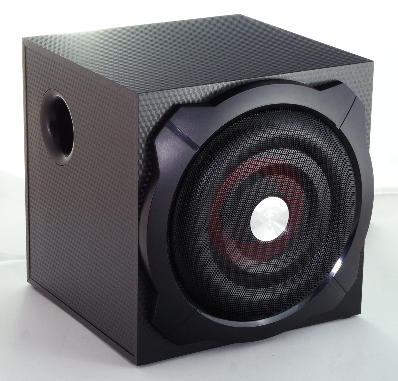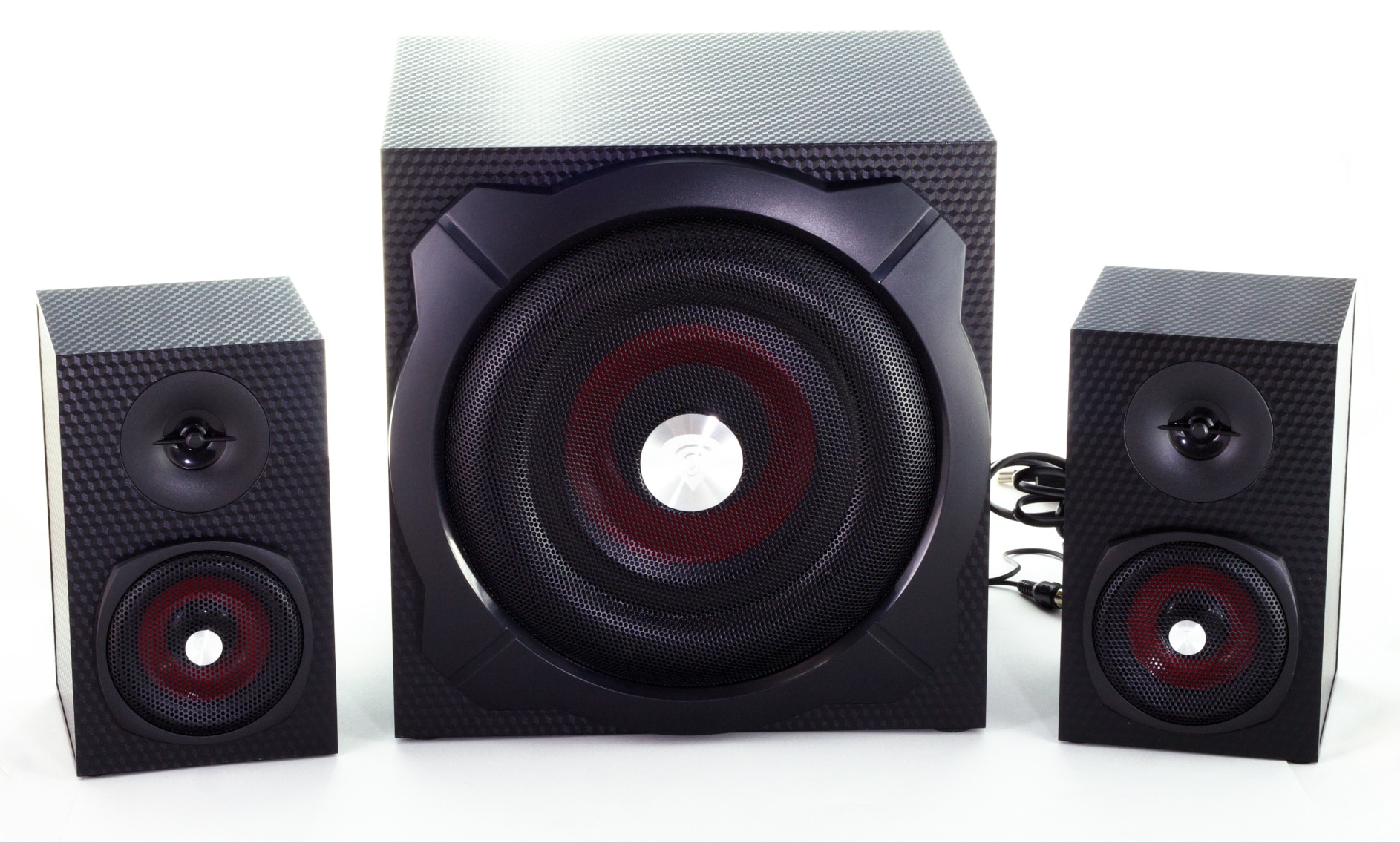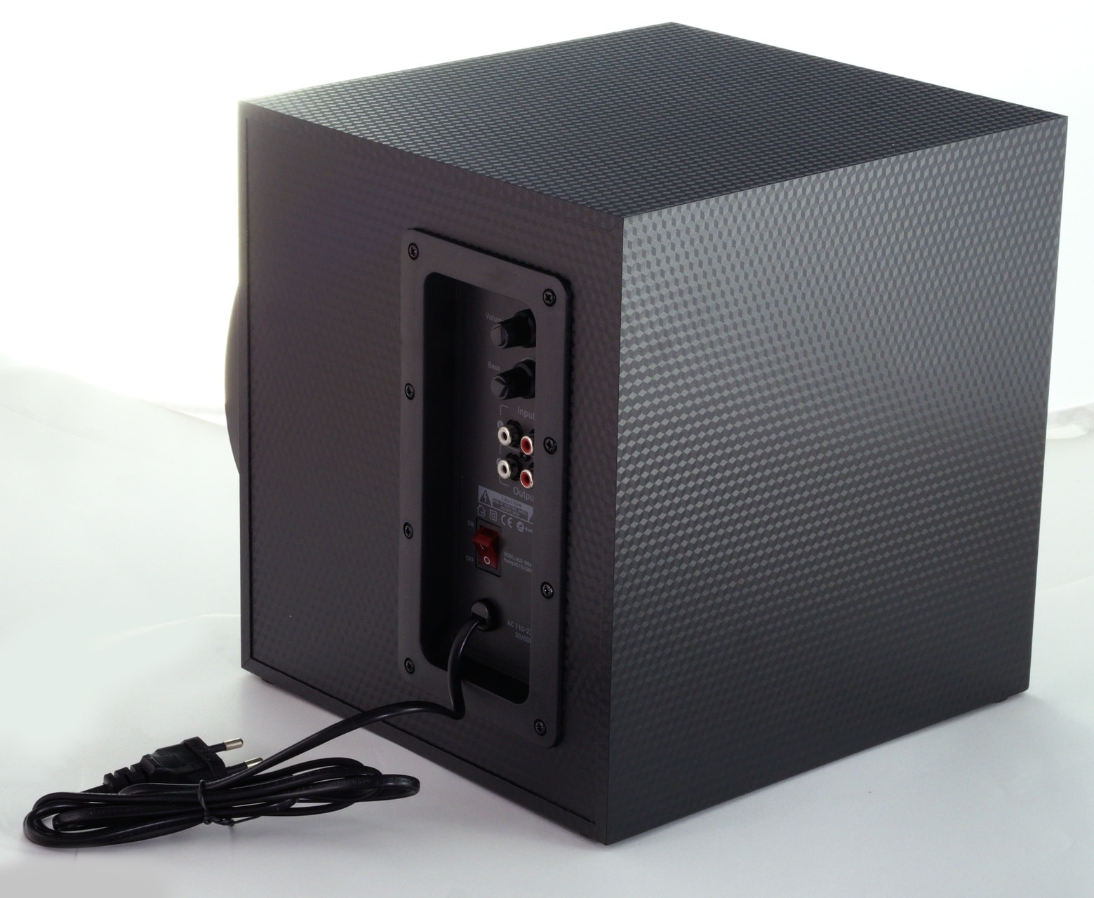 Gu00fcnstiges 2.1-System mit Carbon-Optik und starkem Bass.