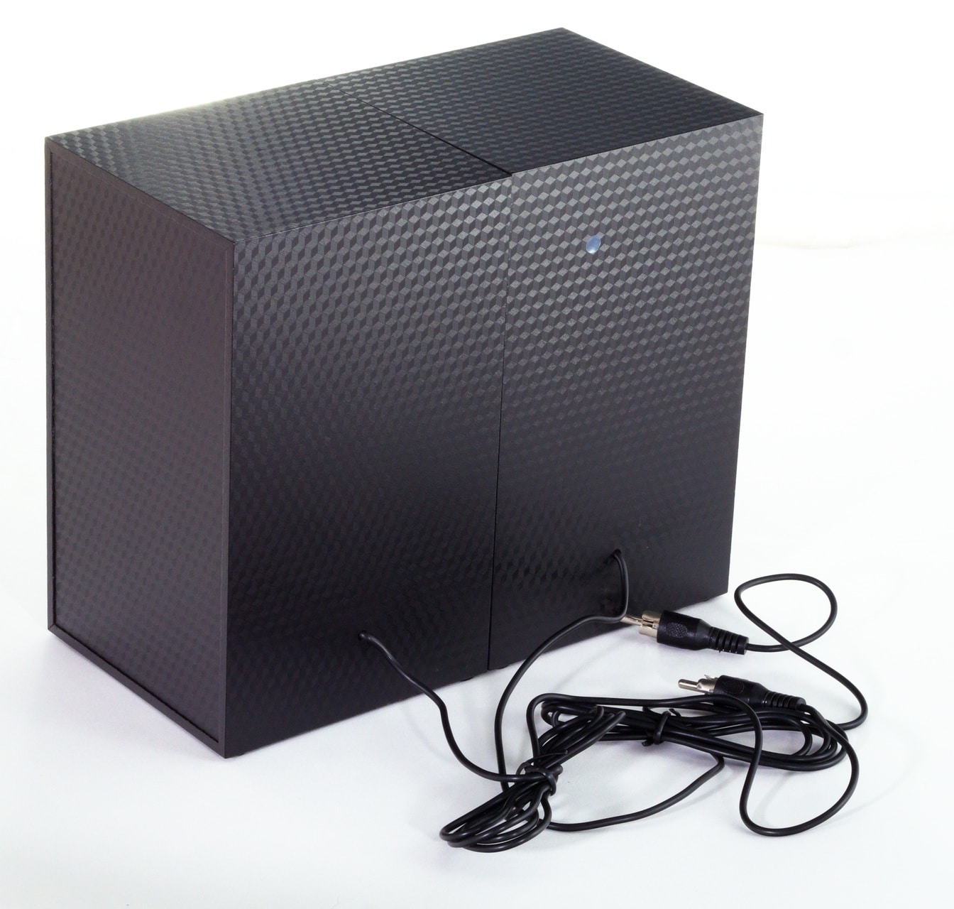 Bei der Optik versucht sich Genesis an einem Carbon-Look: Sowohl der Subwoofer als auch die beiden Satelliten sind vollständig mit einer Carbon-Folie bezogen, die einen ansprechenden 3D-Effekt bietet. Das sieht modern aus und ist wartungsärmer als großflächig verwendeter Hochglanz-Lack, der manchmal für denselben Zweck eingesetzt wird.
