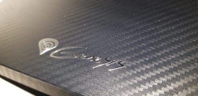 Die Füße sind aus Metall und wirken auf den ersten Blick zwar nicht unstabil, aber die Frage, ob der Tisch auch unter Last und etwas Bewegung nicht wackelt, hat sich zu Beginn schon gestellt. Dies ist aber nicht der Fall. Der Tisch steht bombenfest auf dem Boden und hat, auch wenn man es drauf anlegt, weder in der Horizontalen, noch in der Vertikalen Spiel. Für den Nutzer zwar nicht ausschlaggebend, ist es aus Sicht des Brandings etwas schade, dass der Name und das Modell auf den Füßen schwarz auf schwarz gehalten ist und somit kaum wahrzunehmen ist. Lediglich auf der linken unteren Ecke der Tischplatte ist das Logo von Genesis eingeprägt und gibt dem Tisch eine gewisse Identität.
