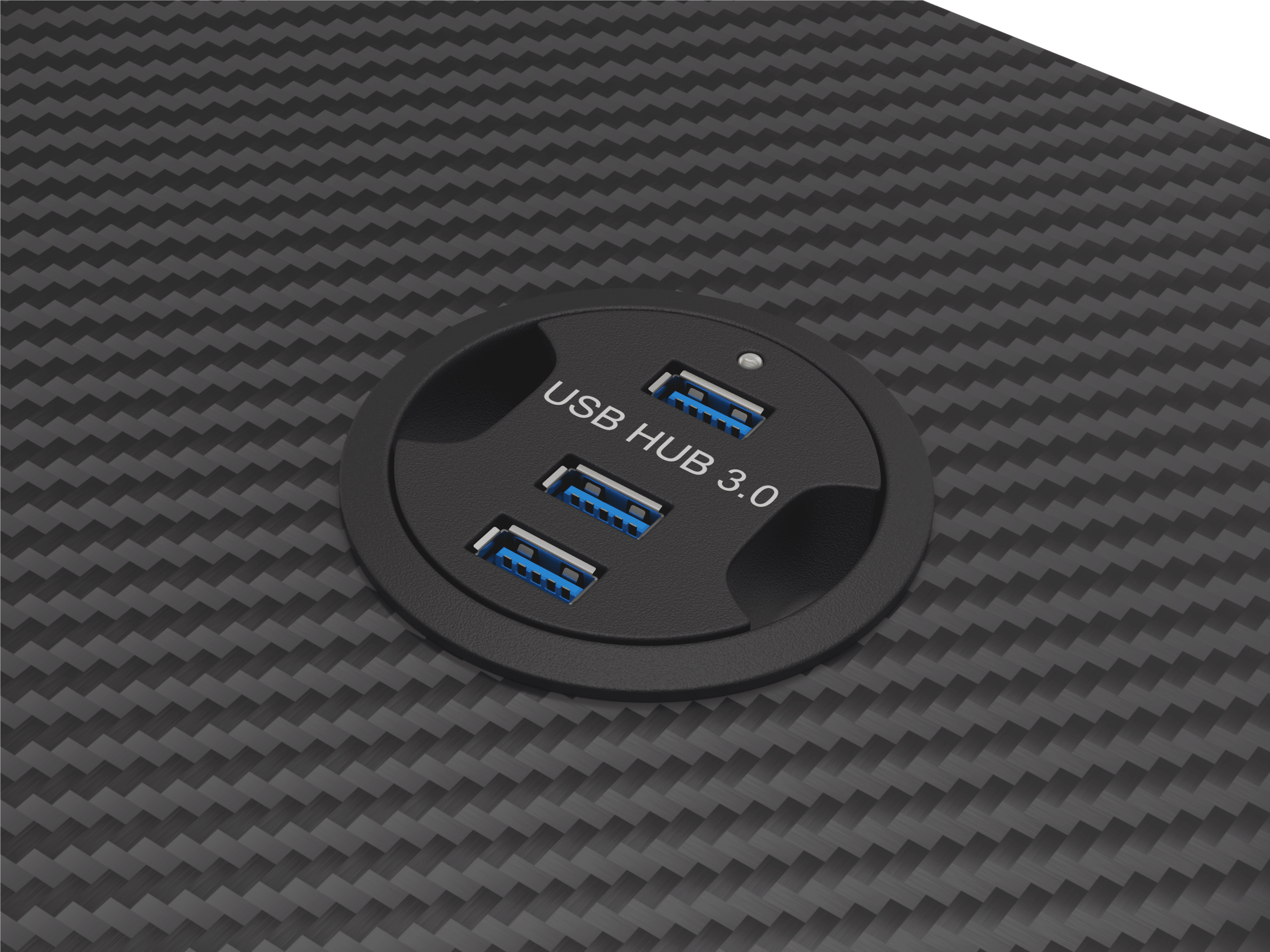 Da es sich nicht um einen normalen Schreibtisch, sondern einen Gaming-Schreibtisch handelt, weißt der Genesis Holm 510 RGB natürlich Funktionen auf, die man normalerweise nicht findet. So verfügt der Holm 510 über einen USB-Hub, welcher 3 Ports hat, die alle USB 3.0 unterstützen. Was nach einer tollen Erweiterung der Schnittstellen am PC klingt, muss ein Stück weit dadurch relativiert werden, da ebenso 3 USB-Ports benötigt werden, um alle Funktionen des Tisches nutzen zu können. Wer neben dem Hub auch die RGB-Beleuchtung und das induktive Laden nutzen möchte, gewinnt entsprechend keine USB-Ports, hat aber ggf. mehr USB-3.0-Ports, die teilweise doch rar gesät sind.