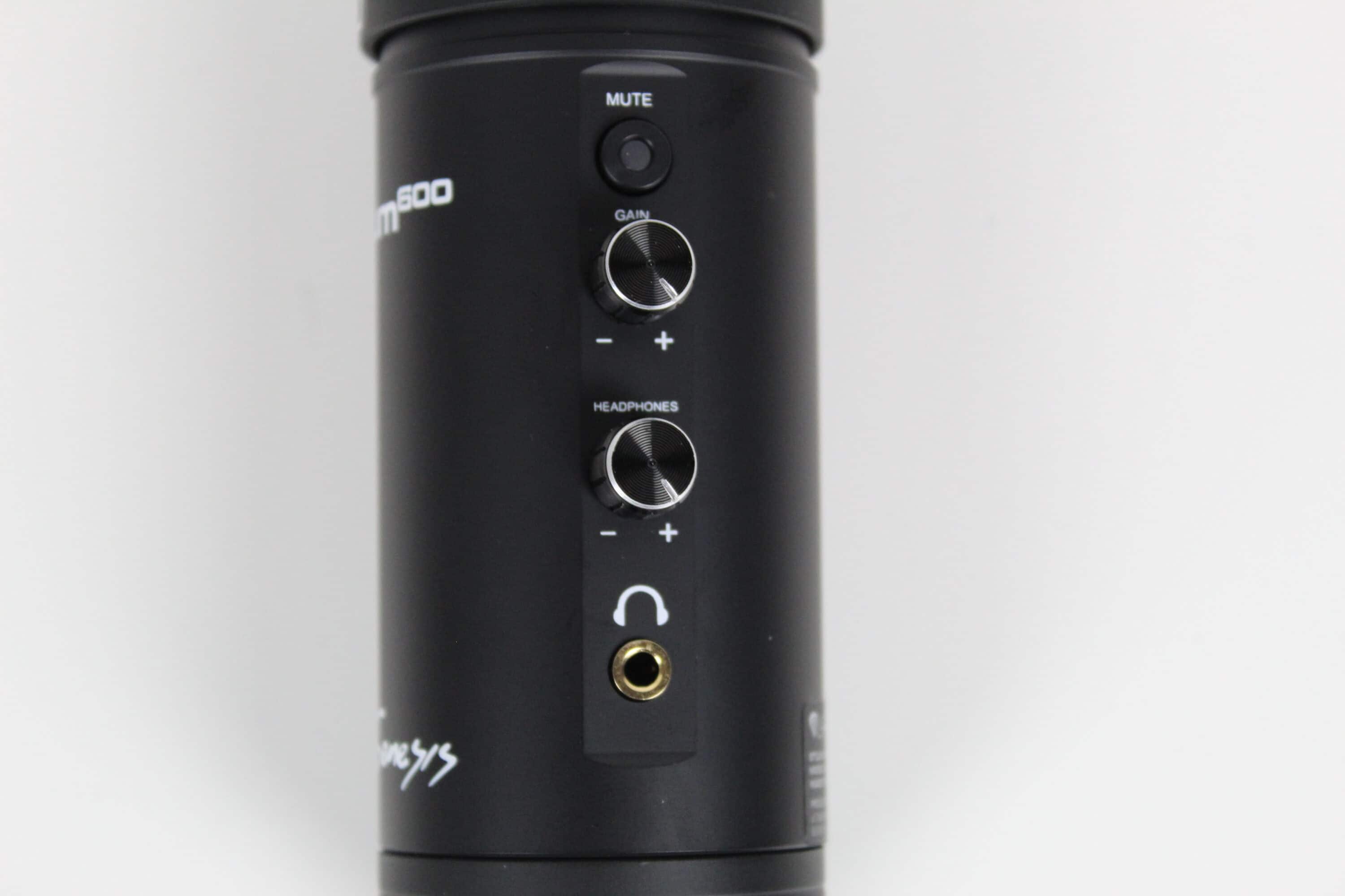 Das eigentliche Mikrofon besteht aus einem Aluminiumgehäuse, bedruckt mit dem Markennamen Genesis und der Modellbezeichnung des Mikrofons. Zusätzlich sind hier ein Gain-Regler, um die Mikrofonlautstärke anzupassen, ein Lautstärkeregler für den Lautsprecheranschluss und eine Stumm-Taste vorhanden. Auf der Unterseite wird das Kabel verbunden – dies lässt sich einfach stecken und sitzt fest.