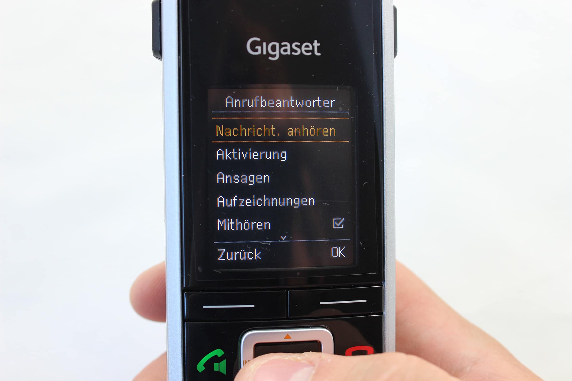 Falls ihr wirklich einen Anruf verpasst habt, darf natürlich auch ein Anrufbeantworter nicht fehlen. So bietet das S850A GO ganze drei Anrufbeantworter mit einer Aufzeichnungslänge von bis zu 55 Minuten. Das ist ganz interessant, wenn ihr mehrere Rufnummern per IP-Telefonie aufgeschaltet habt und dort unterschiedliche Anrufbeantworter nutzen möchtet. Die Hinweisansage kann natürlich frei eingestellt werden, so könnt ihr aus vorgefertigten Ansagen wählen oder auch eure eigene Ansage aufnehmen. Bedient wird der Anrufbeantworter einfach über das Mobilteil, eure Basisstation steht eigentlich nur irgendwo in der Ecke. Auch über eine Fernabfrage, also einen externen Anruf könnt ihr den Anrufbeantworter abfragen. Dazu müsst ihr beim Anruf nur eine PIN eingeben.