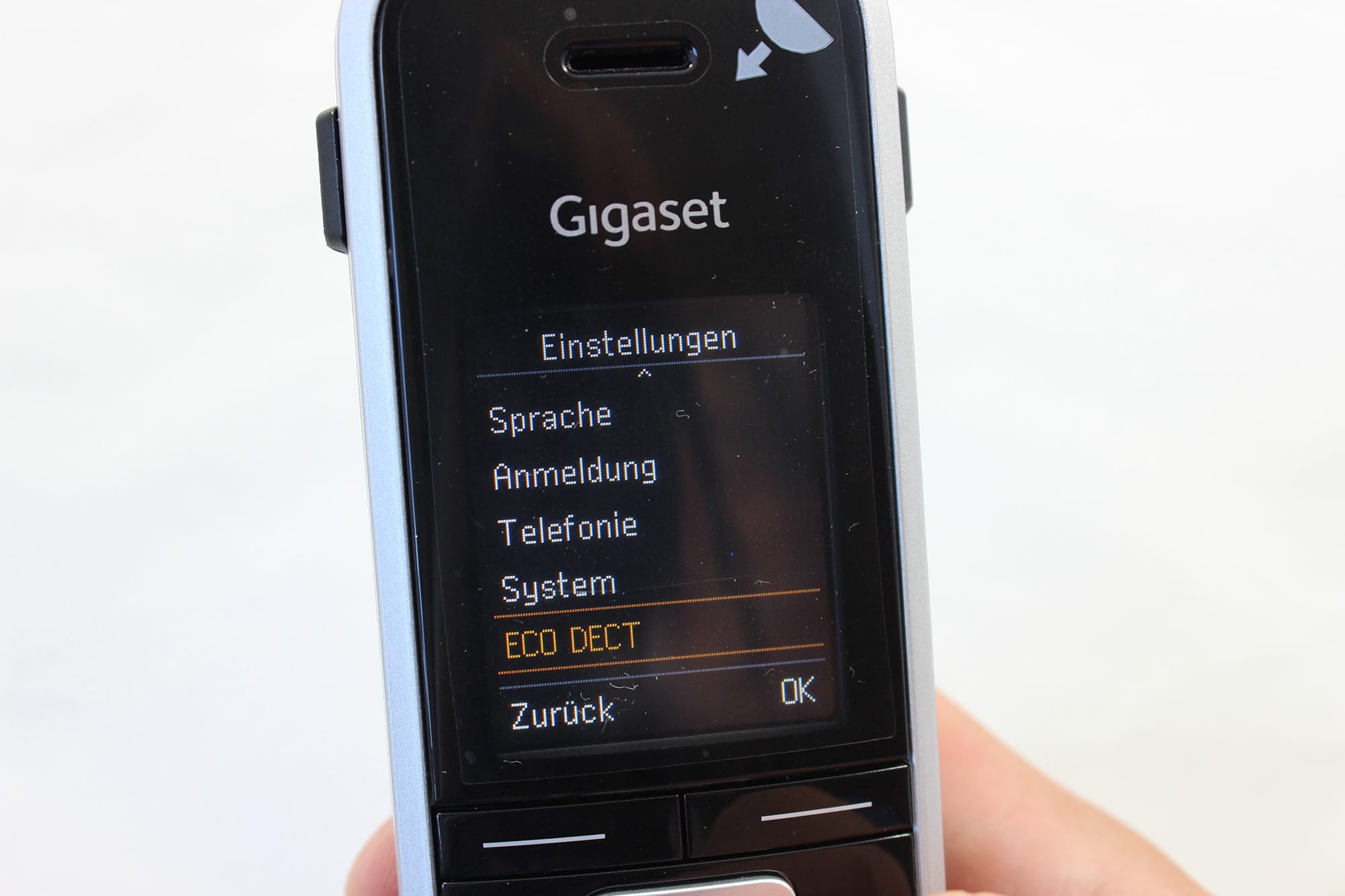Um den Energieverbrauch und die Strahlungsbelastung zu senken hat das Telefon einen integrierten ECO DECT Modus, welchen ich leider nicht ausführlich testen konnte. Mit einer Laufzeit von bis zu 300 Stunden im Standby und 12 Stunden Sprechzeit bietet das Mobilteil jedoch auch so genug Power.