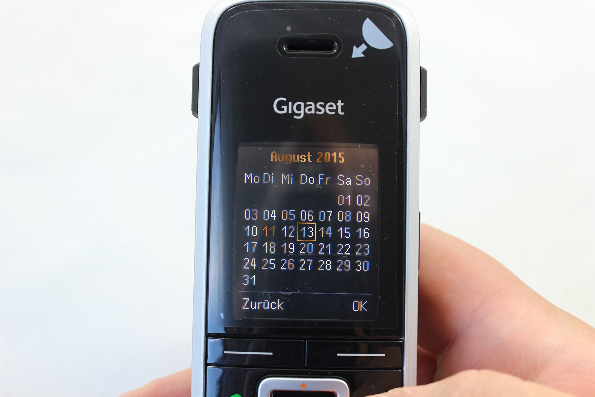 Zusätzlich zu den „normalen“ Funktionen bietet das Gigaset S850A GO noch einen Kalender, mit dem ihr eure Termine verwalten könnt. Dort könnt ihr Datum und Uhrzeit individuell einstellen und natürlich auch einen Text eingeben um den Termin zu benennen. Benachrichtigt werdet ihr dann mit einem einstellbaren Signalton. Ähnlich funktioniert auch die Weckerfunktion, nur dass ihr dort auch einen Zeitraum (z. B. Montag bis Freitag) und die Lautstärke einstellen könnt. Der Wecker kann also auch dauerhaft für bestimmte Tage aktiv sein und muss nicht jeden Tag neu gestellt werden.