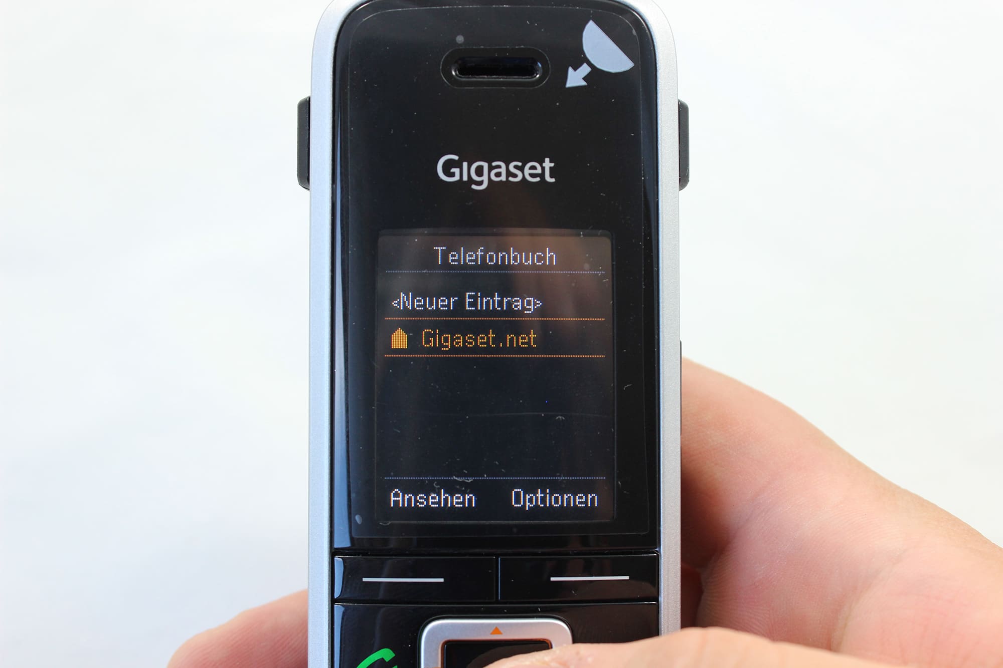 Beim Display setzt das Gigaset S850A GO auf Farbe. Das Farbdisplay ist 35 mm hoch und 28 mm breit. Somit misst es 1,8 Zoll in der Diagonale. Dabei hat es eine Auflösung von 128 x 160 Pixeln. Hört sich nach wenig an? Ist es auch. So braucht man noch nicht mal besonders genau hinschauen und erkennt schon einzelne Pixel. Da man mit dem Telefon jedoch nicht irgendwelche Spiele zockt oder ähnliches ist die Auflösung aber vollkommen in Ordnung und garantiert auch eine längere Akkulaufzeit als mit mehr Pixeln.