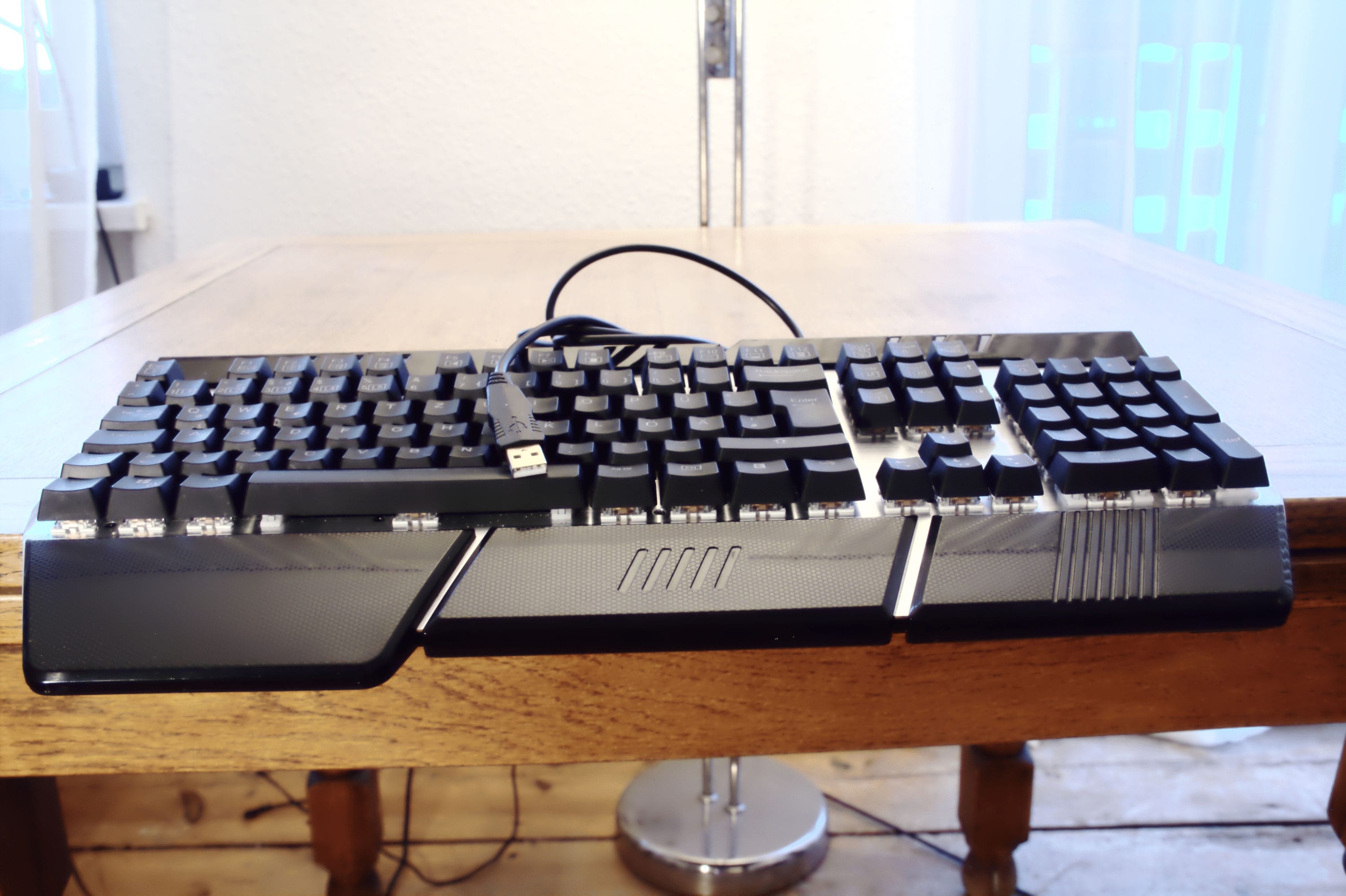 Ein Test mit dem Handballen zeigt: Das N-Key-Rollover funktioniert einwandfrei, wenn auch mit einer leichten Verzögerung ab der achten Taste, was aber Normalbetrieb keine Rolle spielen dürfte. Auch das Anti-Ghosting klappt ohne Probleme. Das Deaktivieren der Windows-Taste ist ebenfalls möglich, es gibt jedoch keine Makro-Tasten.
