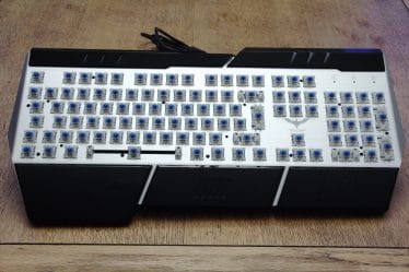 Die semitransparente Beschriftung der Tasten ist per Laser eingearbeitet und dürften auch bei ausgiebiger Nutzung nicht verblassen. Auffällig ist, dass sämtliche Tasten ein deutliches waagerechtes Spiel haben, das im normalem Betrieb zwar keine negativen Auswirkungen hat, uns aber bei anderen Tastaturen in dem Maße noch nicht aufgefallen ist.