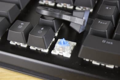 Die KB462L verfügt 120 Tasten, die auf Outemu-Switches sitzen. Diese sind vergleichbar mit den Cherry MX Blue, also ein günstigere Alternative. Die Outemus haben einen klar spürbaren Schaltpunkt und brauchen auch in etwa 60 Gramm um betätigt zu werden. Und außerdem gibt es ein sehr gut hörbares, akkustisches Feedback – KLICK! In Sachen Qualität können wir uns bei so einem Test eher nicht äußern, da die Switches erst nach viel mehr Anschlägen erste Abnutzungserscheinungen zeigen würden.
