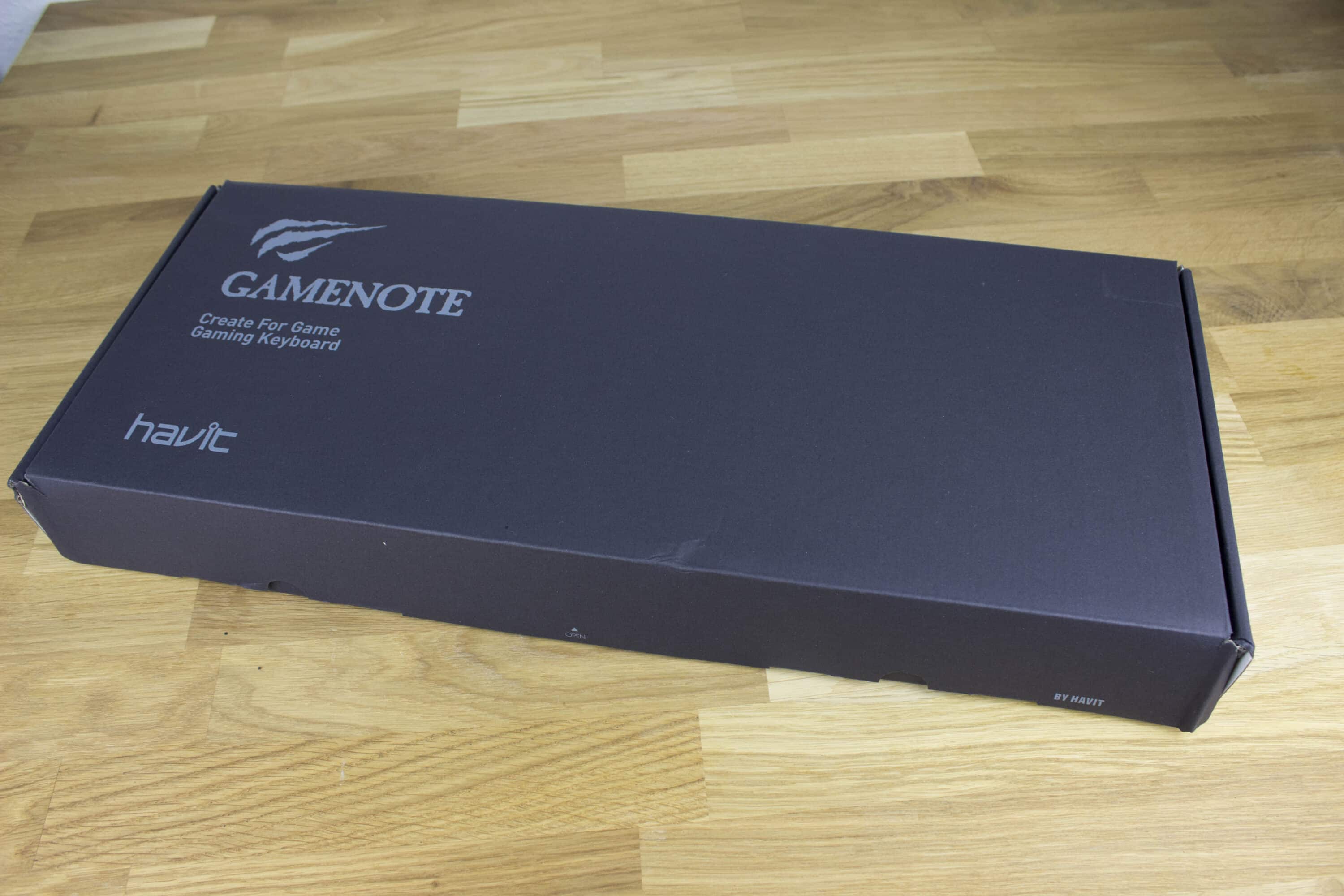 Die Havit KB462L kommt einem schlichtem Karton bei euch an. Außer des Schriftzugs und ein paar Infos der Tastatur ist dort nichts weiteres zu finden. Mit im Karton liegt ein Tastenabzieher, die abnehmbare Handballenablage und etwas Papierkram.