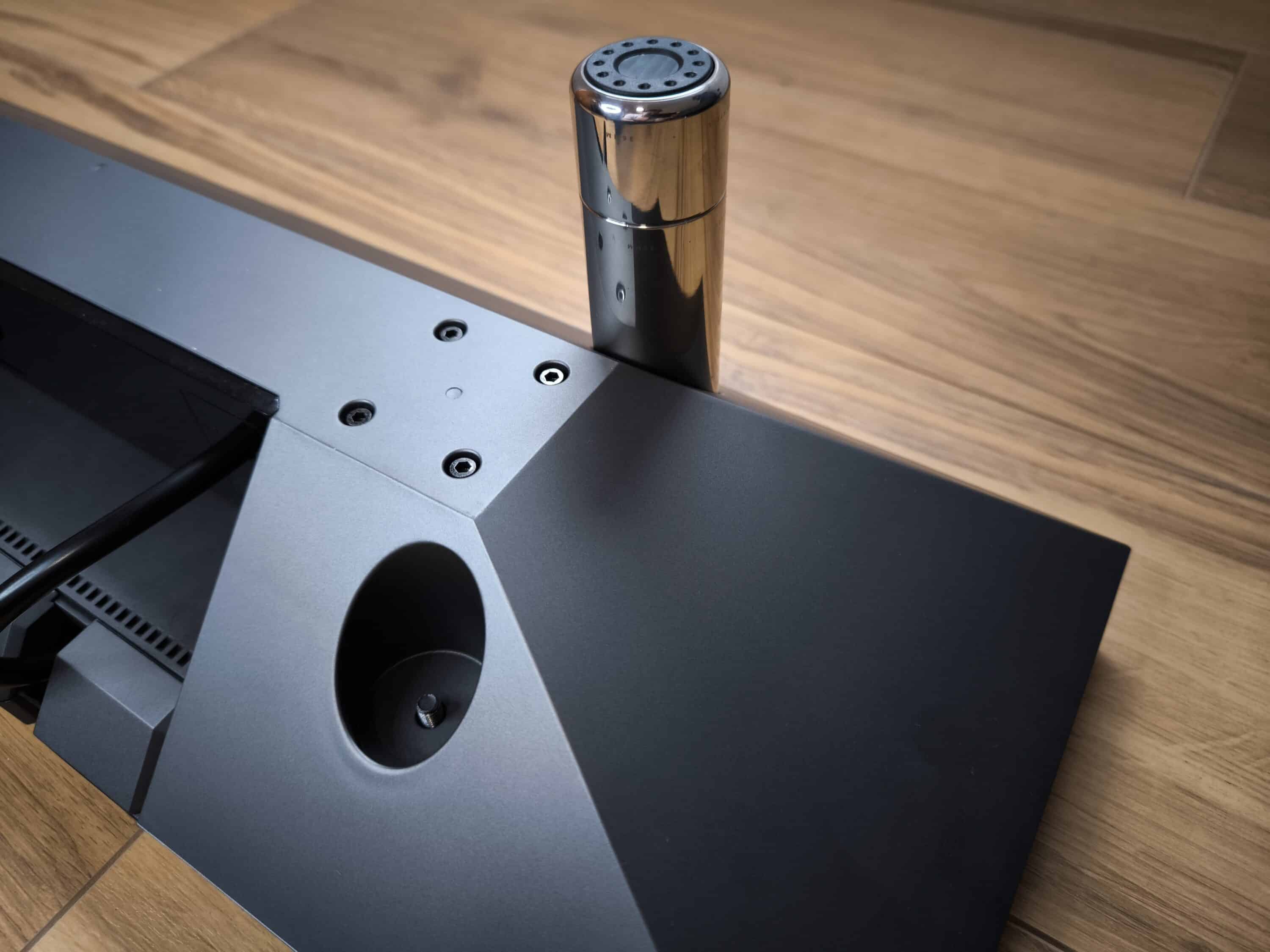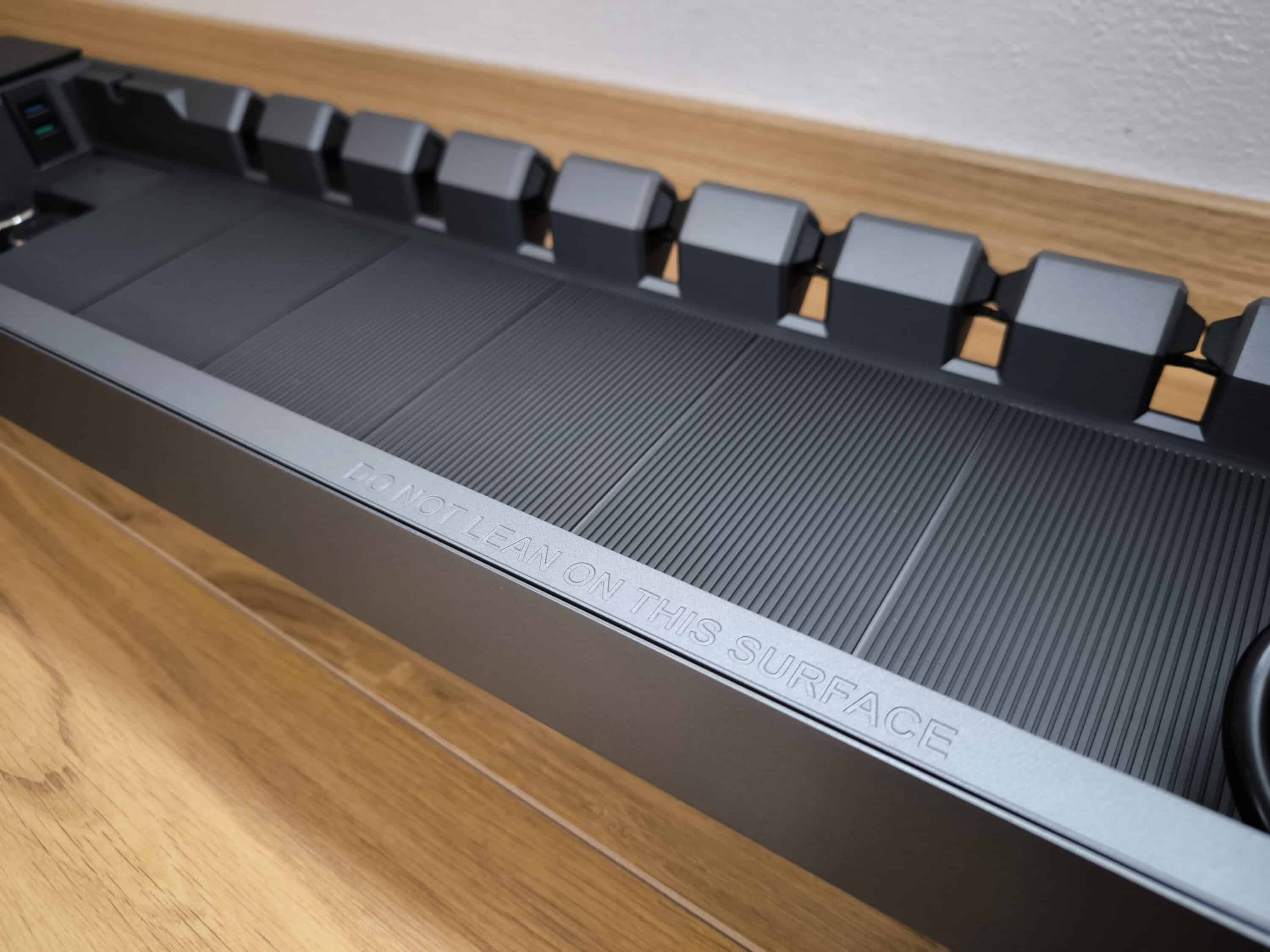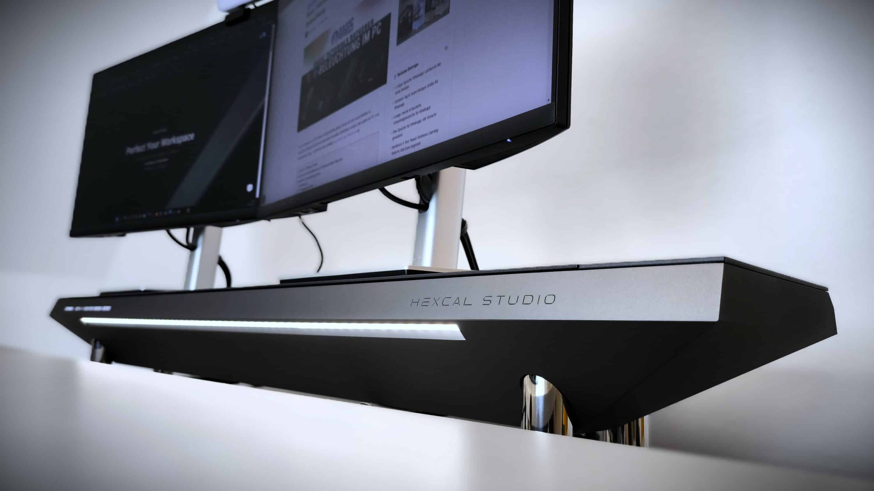 Zu beachten ist allerdings, dass das Hexcal Studio aufgrund seiner Länge von rund 120 cm durchaus Platz auf dem Schreibtisch benötigt. Als neu gewonnene Ablagefläche kann dafür wiederum der gesamte Bereich unter den Monitoren genutzt werden. Insofern ist es eher für längliche Arbeitsplätze geeignet, während der Einsatz an Ecktischen möglicherweise schwieriger sein dürfte.