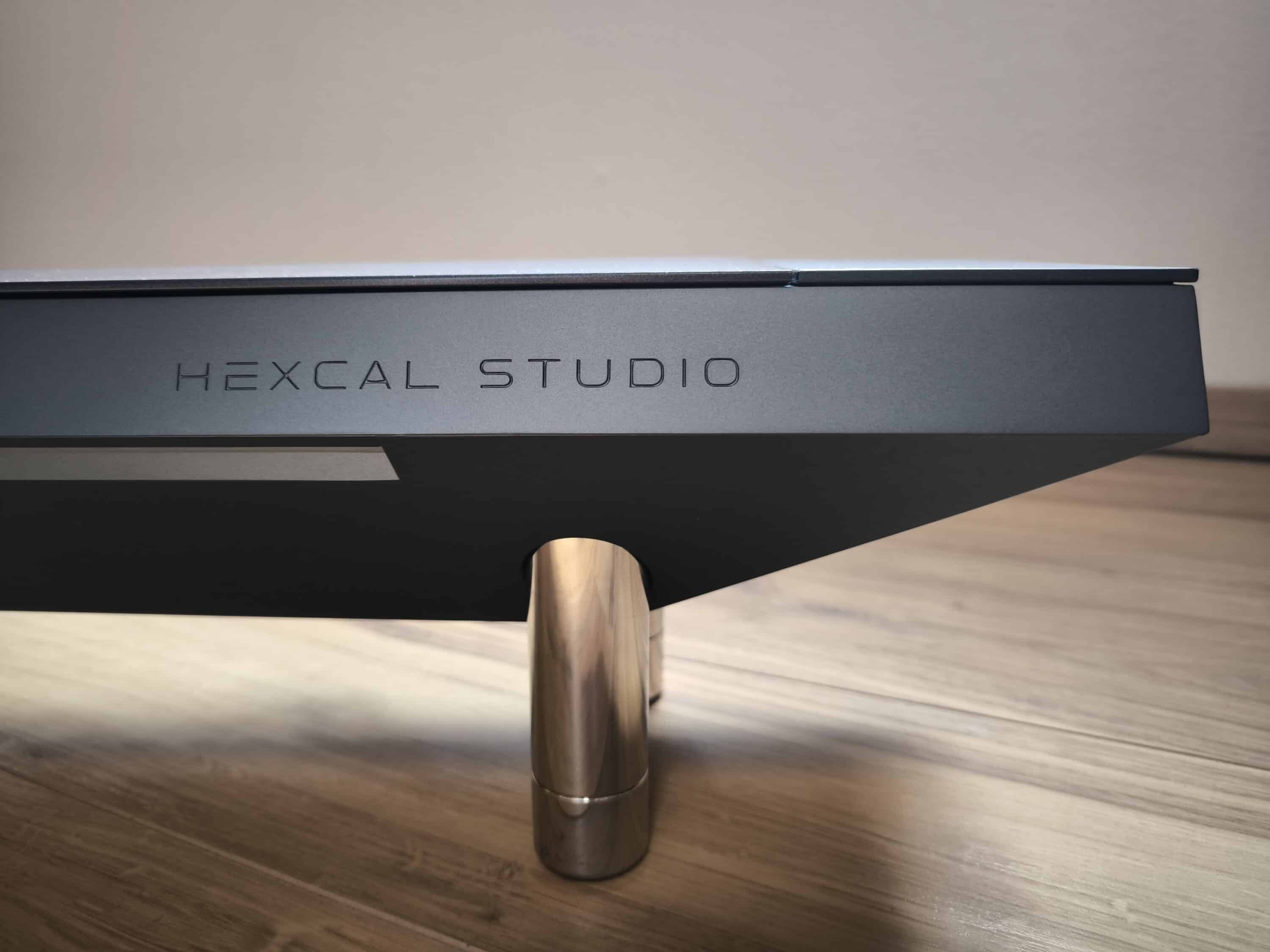 Kurzum: Das Hexcal Studio ist äußerst robust verarbeitet und erlaubt trotz des hohlen Innenraums eine Flächenbelastung von ca. 45 kg. Das liegt zum einen an der Tatsache, dass das Hexcal Studio selbst fast stolze 10 kg auf die Waage bringt, zum anderen aber auch daran, dass die Edelstahlfüße für eine hohe Standfestigkeit sorgen. Schließlich ist es angesichts der Leistungsklasse auch nicht verwunderlich, dass die Verarbeitung auf einem sehr hohen Niveau liegt. Im Test knarzt unser Modell zu keinem Zeitpunkt und auch alle Bedienelemente weisen eine sehr gute Haptik auf.