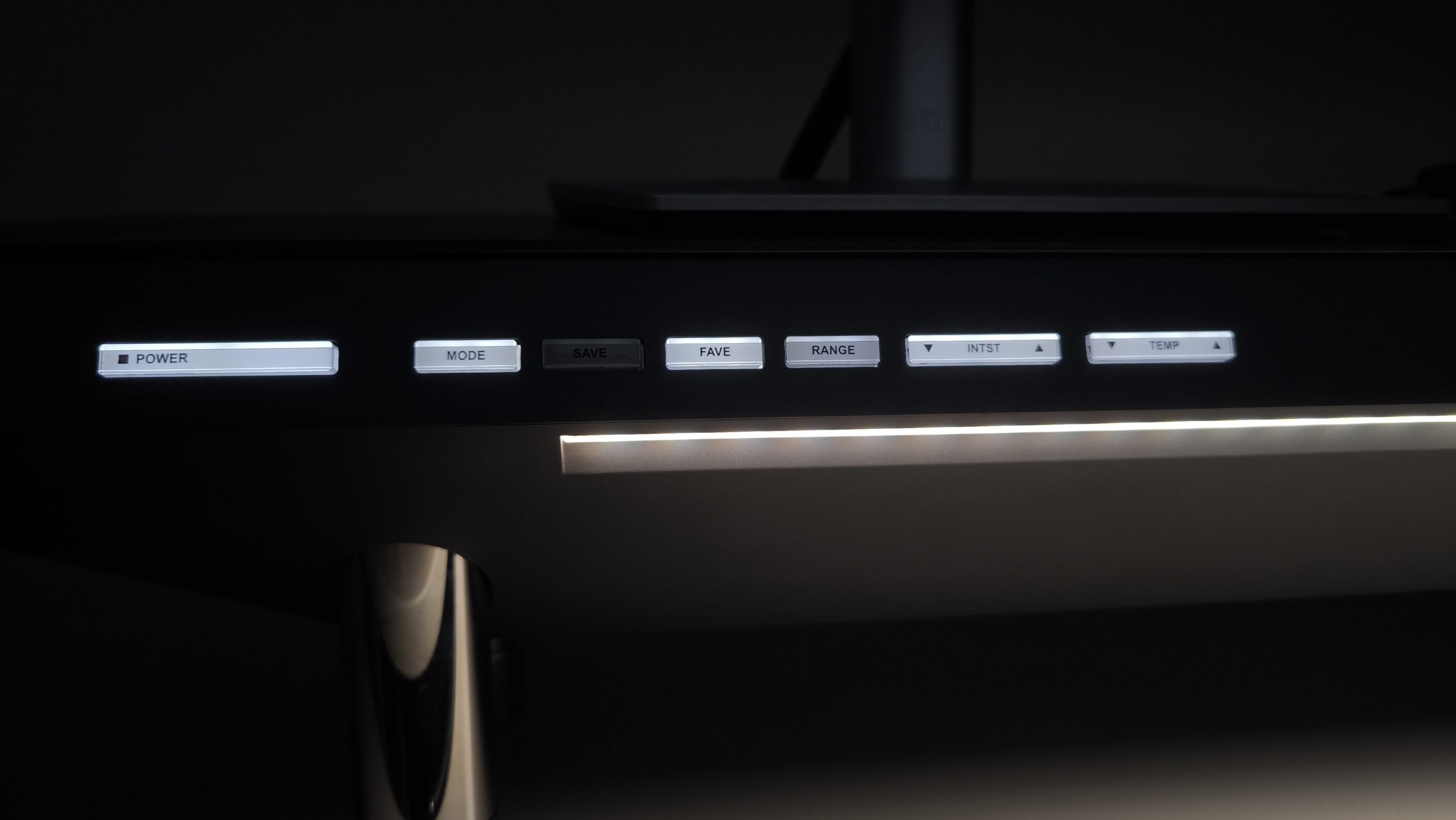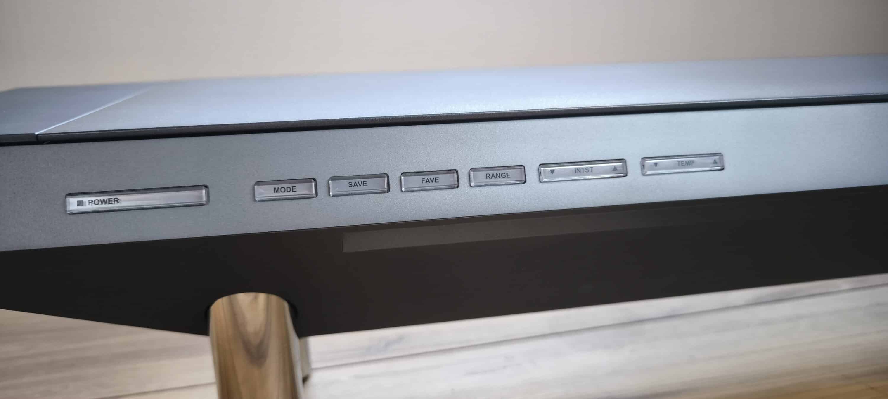 Ein interessantes Feature ist die Verwendung der vier kleinen Tasten (Mode, Save, Fave, Range) als unterstützende Anzeige bei der Konfiguration. Je nach Einstellung leuchten diese vier Buttons unterschiedlich stark oder erlöschen ganz. Man kann sich das als eine Art Schieberegler vorstellen, mit dem sich mehrere Seiten durchblättern lassen. Dieser Mechanismus ist uns bisher noch nicht untergekommen, funktioniert aber einwandfrei und wirkt absolut durchdacht.