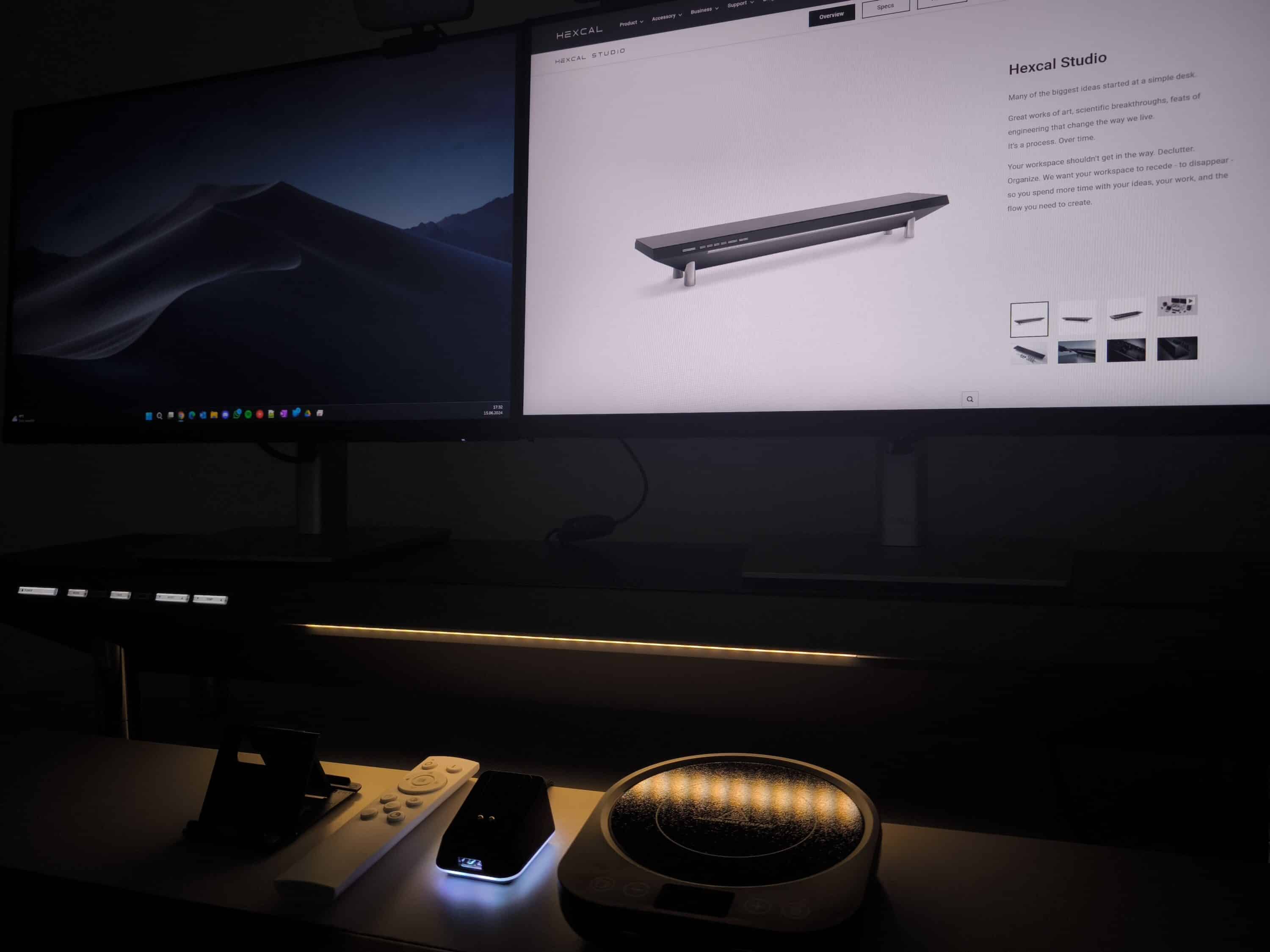Das Hexcal Studio besticht durch hochwertige Verarbeitung und durchdachte Funktionen, die den Arbeitsplatz effizient und ergonomisch gestalten. Die robuste Bauweise in Kombination mit einem innovativen Beleuchtungssystem sowie einem durchdachten Kabelmanagement sind die herausragenden Merkmale, welche das Hexcal Studio zu etwas Besonderem machen. Insofern kann es tatsächlich zu einer Verbesserung der Arbeitsumgebung beitragen und definitiv helfen, den Schreibtisch aufgeräumt und funktional zu halten.