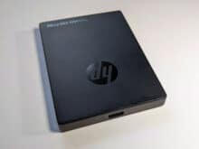Beim Gehäuse setzt HP auf einen Mix aus Aluminium und Kunststoff, die Oberfläche ist matt schwarz, nur das HP-Logo und der P700-Schriftzug sind glänzend. Das Design erinnert ein wenig an interne SATA-SSDs und weiß mit seiner Schlichtheit zu gefallen. Mit seinen Maßen von 92 x 65 mm ist die SSD zudem deutlich kompakter als bspw. eine externe SSD oder Festplatte im 2,5″ Format. Die Verarbeitung ist rundum sehr gut, dies gilt auch für das beiliegende Kabel und den Adapter.