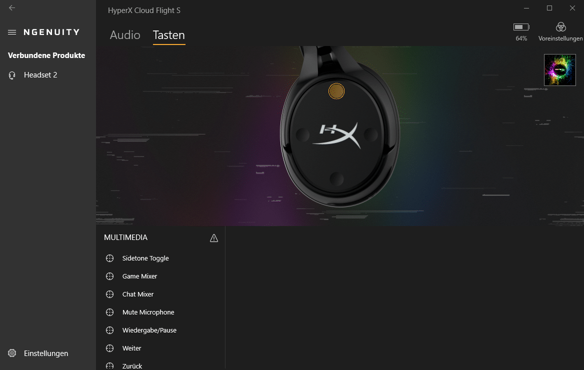 Der Funktionsumfang der HyperX NGENUITY Software, die nur über den Microsoft Store bezogen und somit nur mit Windows 10 genutzt werden kann, ist stark beschränkt. Der einzige sinnvolle Einsatzzweck ist die Änderung der Buttonbelegung, wenn man dies denn überhaupt benötigt. Allerdings muss die Software dann auch immer im Hintergrund laufen, ansonsten ist die Standardbelegung wieder aktiv. Da ein Equalizer oder andere Zusatzfunktionen fehlen, würde ich auf den Einsatz der Software verzichten. Aber wer weiß, ob HyperX hier noch nachliefert, denn die Software befindet sich noch in der Beta.