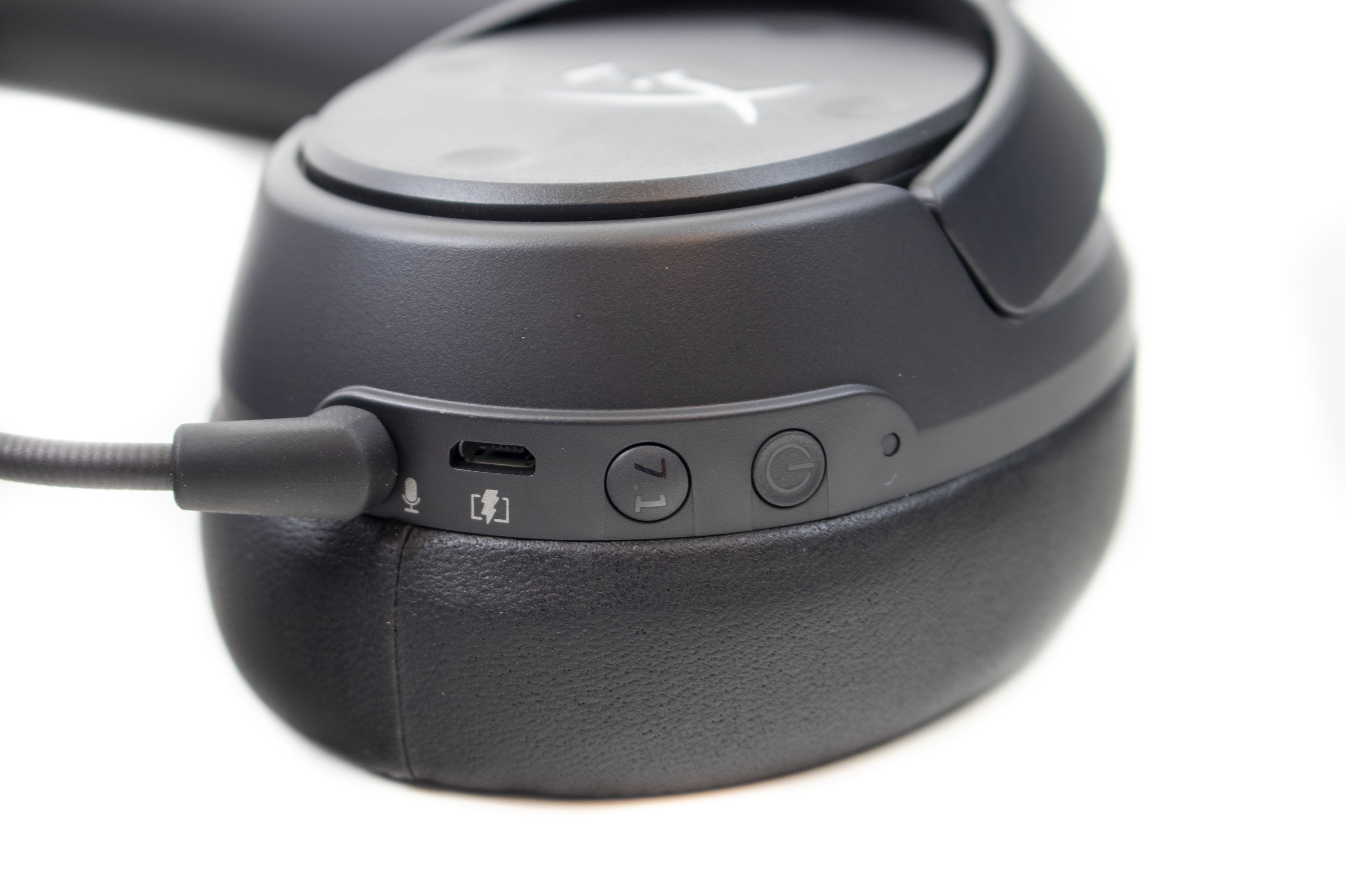 Die anderen Bedienelemente befinden sich alle an der linken Ohrmuschel. Neben einem Ein-/Ausschalter befindet sich hier auch ein Button für den 7.1-Surround-Sound-Modus. Auch der MicroUSB-Anschluss (leider kein USB-C) befindet sich in der Button-Reihe.