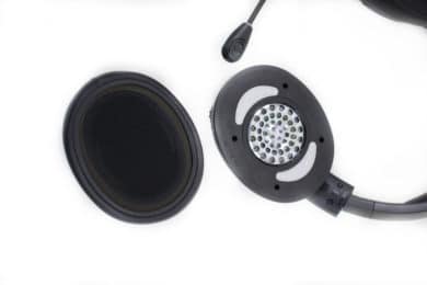 Doch es gibt noch mehr Buttons an dieser Ohrmuschel. Diese befinden sich jedoch nicht am Rand, sondern an der Außenseite. Voreingestellt sind hier: Mikrofonüberwachung, Mikrofonstummschaltung, Game-Chat-Balance (zwei Buttons). Die Belegung dieser Buttons kann über die HyperX NGENUITY Software geändert werden.