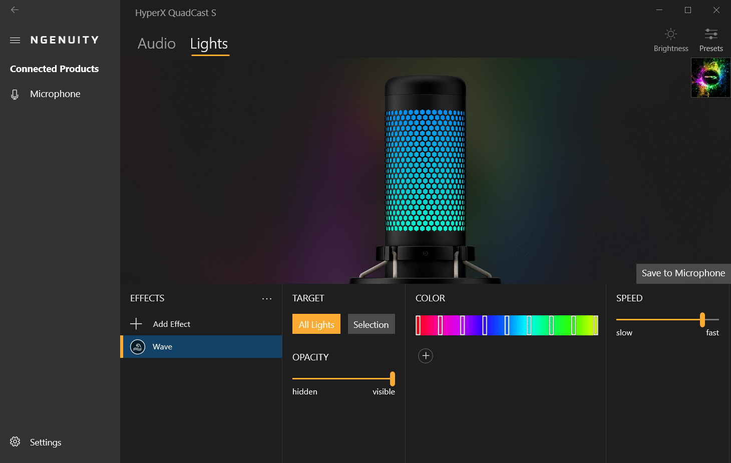 Gesteuert werden können Effekte und Farben ausschließlich über HyperX NGENUITY; also der gleichen Software, die auch die RAM-Riegel, Tastaturen und Headsets von Kingston Technology zum Leuchten bringt.