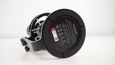 Außerdem hat HyperX noch ein 3-Meter-USB-Kabel – Typ-C zu Typ-A – und einen Montageadapter, der bei der Befestigung des Mikrofons auf einem Stativ oder einem Teleskoparm behilflich ist, beigefügt. Der Adapter passt dabei auf 3/8- und 5/8-Zoll-Gewinden; womit er mit den meisten Stativen und Halterungen kompatibel ist.