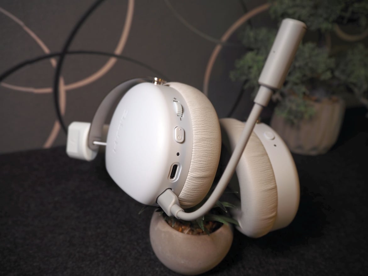 Der Rest des Designs mutet nicht minder außergewöhnlich an. HYTE setzt auf eine matt-weiße Farbgebung der Ohrmuscheln und Bedienelemente, die mit den glänzenden Details am Kopfband und den schicken Metall-Elementen an den Bügeln die edle Optik unterstreichen.