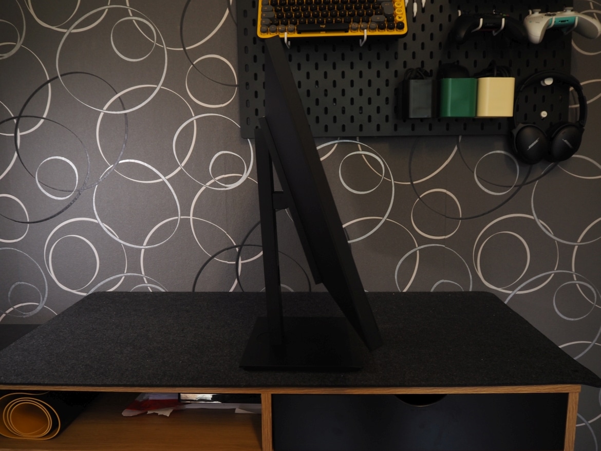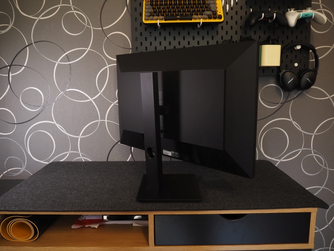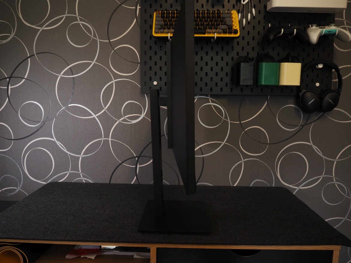 Geboten wird zudem eine Pivot-Funktion, mit der du den Bildschirm um 90 Grad drehen und so das Bild vertikal darstellen kannst. Besonders praktisch: Dank verbautem Schwerkraftsensor erkennt der Monitor selbstständig, wenn du in den vertikalen Modus wechselst, und dreht das Bild (nach kurzer Verzögerung) automatisch mit. Der Weg in die Bildeinstellungen entfällt somit.