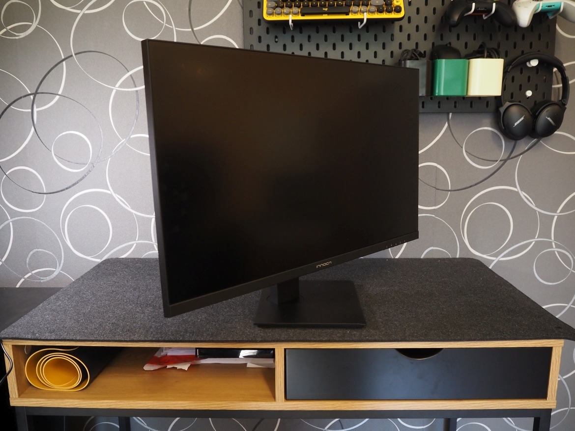Hinsichtlich des Designs präsentiert sich der InnoCN 27C1U eher schlicht und fokussiert. Ja man könnte fast schon sagen: langweilig. Aber das muss ja nichts Schlechtes sein. Es ist ein schlichter, vollständig in schwarzer Farbe gehaltener Monitor mit einer flachen Rückseite.