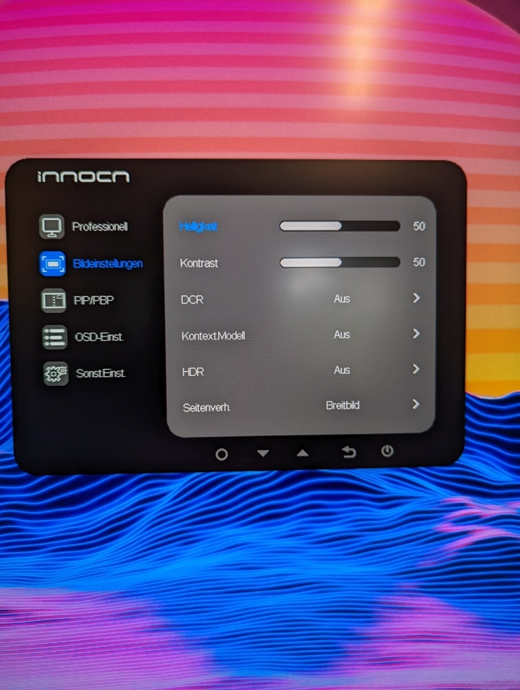 Im On-Screen-Display des InnoCN 27C1U kannst du viele verschiedene Einstellungen vornehmen. Es ist klar strukturiert und mit seinen grauen und schwarzen Farben gut ablesbar. Hier legst du beispielsweise die Bildeinstellungen fest, wählst zwischen verschiedenen Voreinstellungen oder passt die Einstellungen für die Darstellung im Bild-in-Bild- (Picture in Picture) oder Bild-neben-Bild (Picture by Picture)-Modus fest.