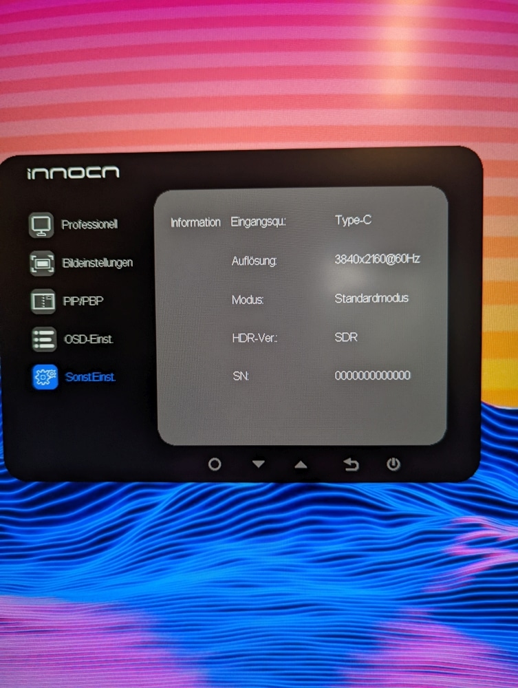 Die maximale Auflösung liegt, wie bereits erwähnt, bei 3.840 x 2.160 Pixeln, also 4K. Die Helligkeit beträgt 400 cd/m², was dem InnoCN 27C1U eine VESA DisplayHDR 400-Zertifizerung einbringt. Die maximale Bildwiederholrate beträgt 60 Hz. Details zur Reaktionszeit liefert der Hersteller nicht, diese fällt allerdings recht hoch aus, womit sich der Monitor nur bedingt für den Gaming-Einsatz eignen dürfte.