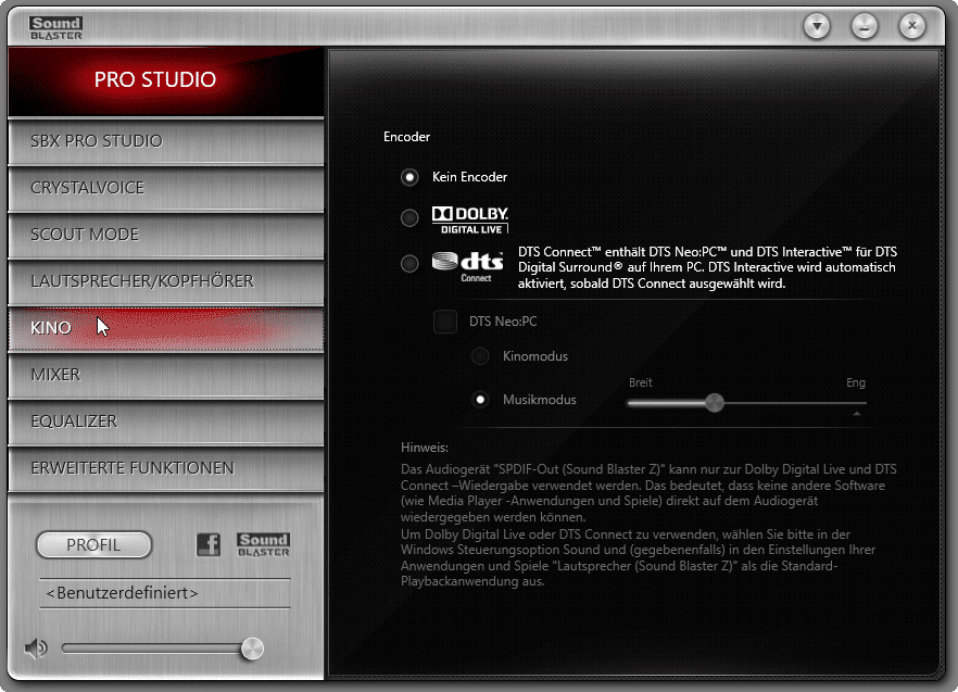 Creatives Sound Blaster Treiber bieten sehr viele Einstellungsmöglichkeiten für Sound und Aufnahme. Dabei ist die Bedienung für Grundeinstellungen sehr einfach und einsteigerfreundlich. Für fortgeschrittene Nutzer bietet der Treiber auch einen Equalizer und einen Mixer, welche viele Optionen eröffnen.