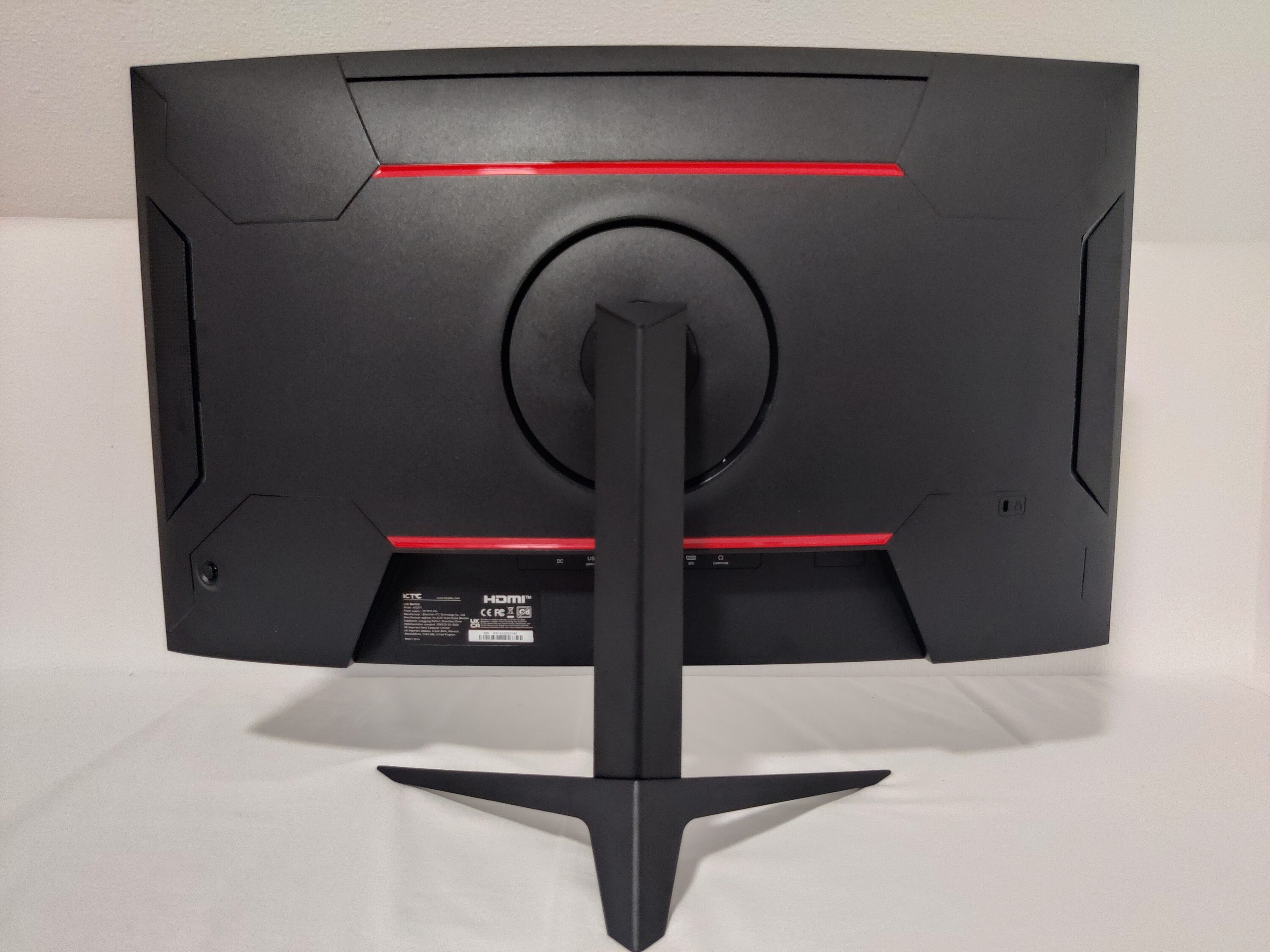 Wenn man davor steht, so macht der KTC H32S17 mit seinem gekrümmten Display Einiges her. Der Standfuß ist massiv gebaut und hält den Monitor aufrecht in Position. Eine Neigung um -5 bis hin zu +15 Grad ist nach eigenem Belieben möglich. Auf der Rückseite des Monitors befinden sich vier LED’s mit RGB-Beleuchtung, um etwas mehr in das Gaming-Erlebnis einzutauchen. Möchte man allerdings die Farbe sowie die Helligkeit anpassen, so ist diese Funktion nicht gegeben. Verarbeitungstechnisch überzeugt der H32S17 mit einem hohen Niveau. Derartige scharfe Kanten oder auffällige Spaltmaße sind uns nicht untergekommen.