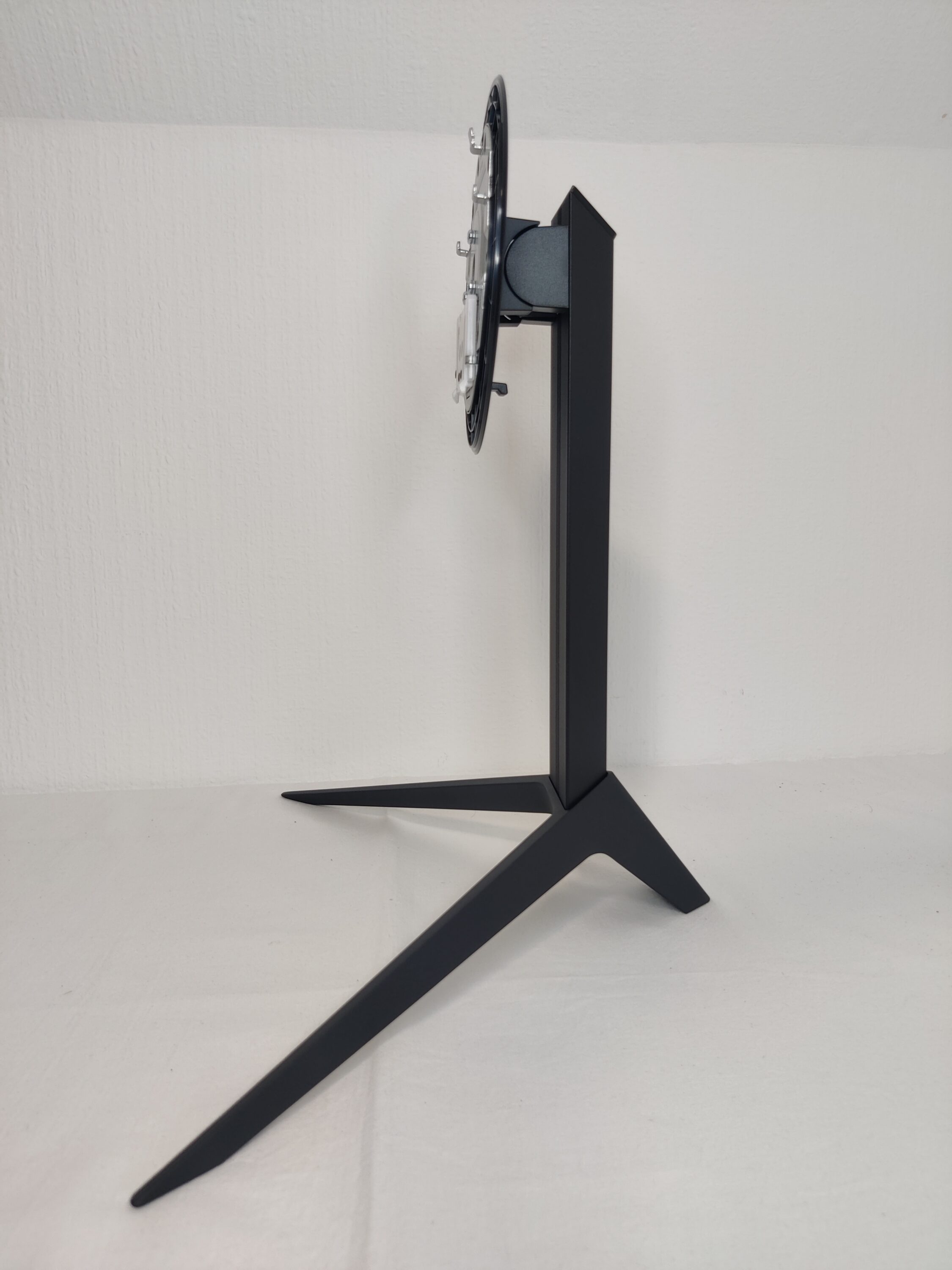 Alternativ kann man den H32S17 über den beiliegenden Standfuß aufstellen. Hierzu montiert man den lediglich den Tragarm mit dem Standfuß mithilfe von zwei Schrauben auf der Unterseite. Die Schrauben sowie der Schraubenzieher liegen dem Curved-Monitor bei. Anschließend hängen wir den Standfuß in die dafür vorgesehene Halterung des Monitors ein, sodass ein kurzes Klick-Geräusch ertönt. Nun ist der KTC H32S17 einsatzbereit und kann ab sofort an den PC angeschlossen werden.