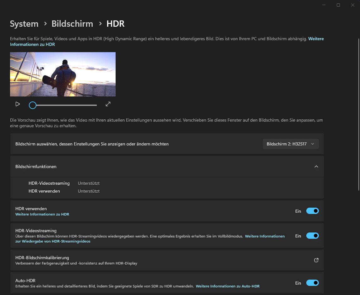 Weitere Technologien wie G-Sync und AMD’s Pendant mit FreeSync Premium wird ebenso unterstützt. Darüber hinaus lässt sich in den Windows-Einstellungen die variable Aktualisierungsrate aktivieren, um etwaiges Screen-Tearing weiter zu verringern. Im MPRT-Modus liegt die Reaktionszeit sogar bei 1 ms, was den Input Lag wiederum reduziert. Überdies ist HDR10 mit an Bord, welches bei einer allgemeinen Helligkeit von rund 350 nits jedoch kaum für Unterschiede sorgt.