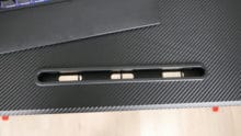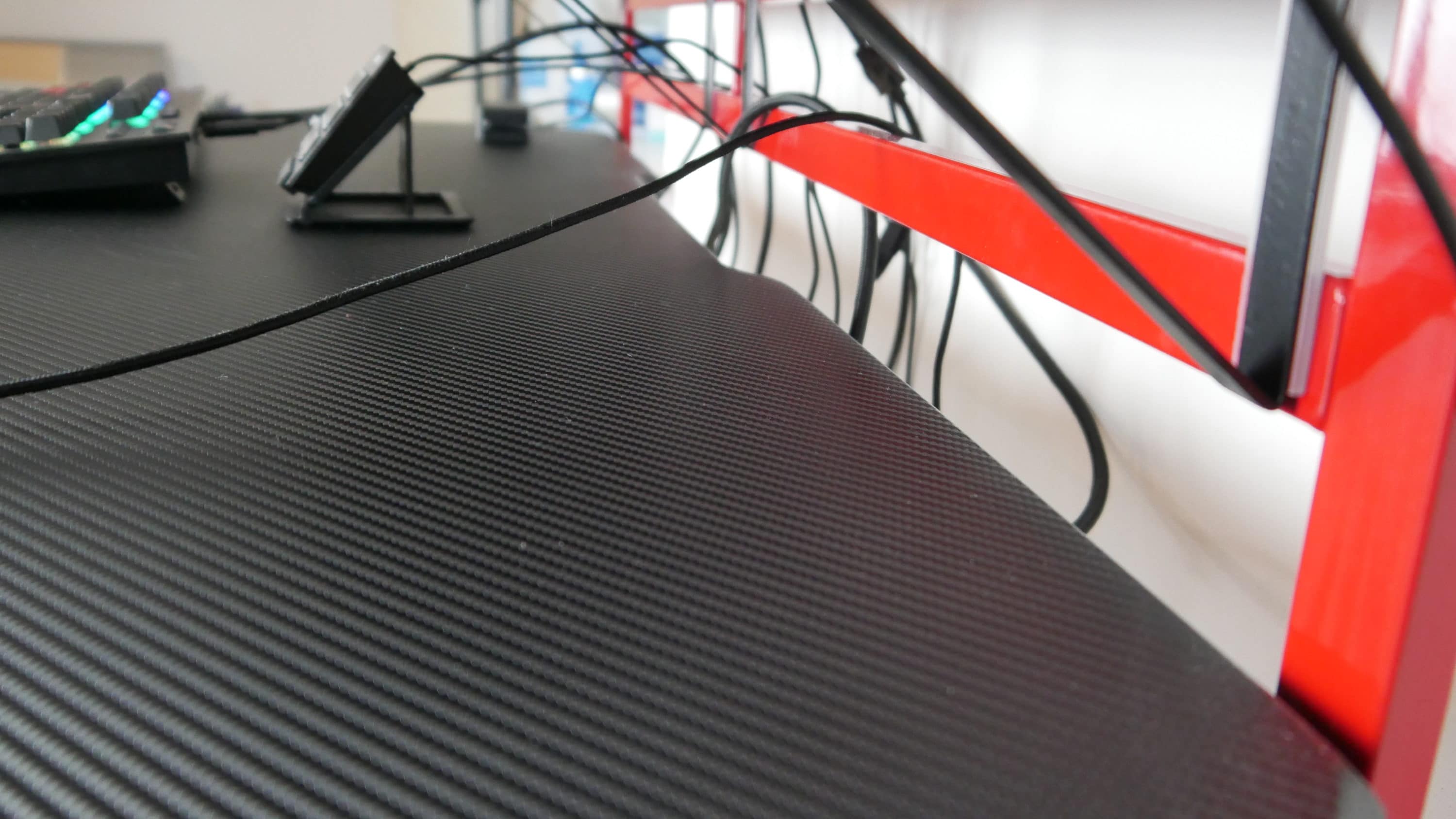 Neben dem Aufbau und der generellen Qualität und der Verarbeitung spielen bei einem Tisch auch die Features eine große Rolle. Die schon erwähnte Abstellvorrichtung für die Monitore sorgt für zusätzliche Nutzfläche. Weitere Features sind auch die Carbon-Faser-Oberflächentextur der MDF-Tischplatte. Diese sorgt dafür, dass jede Mausaktivität erkannt wird und gleichzeitig rutscht die Maus fast widerstandslos über die Platte. Ein weiteres Feature zur Erweiterung der Nutzfläche ist ein Verstaufach, welches unter den Tisch geschraubt wird. Dafür sind auch schon vorgebohrte Löcher vorhanden, sodass die Schrauben sehr einfach angesetzt werden können. Ebenfalls mit vorgebohrten Löchern gibt es auch einen Getränkehalter und einen Headsethalter, sodass die MDF-Platte einzig für Tastatur, Maus oder Arbeitsgeräte verwendet werden kann. Zusätzlich gibt es eine Vertiefung, die beispielsweise dafür genutzt werden kann, ein Smartphone oder ein Tablet hinzustellen. Leider gibt es beim LC-GD-1R keine Kabelkanäle in denen man die Kabel verstecken könnte.