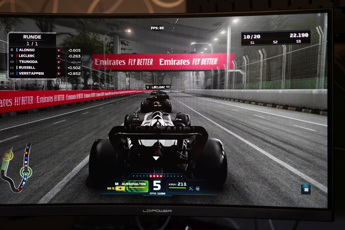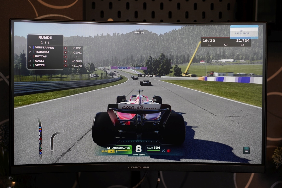 Die satten Farben und hohen Kontraste kommen im Gaming-Betrieb ebenfalls spürbar zum Vorschein. Insgesamt wirkt das Bild schön kräftig und dynamisch, während die 1200R-Krümmung natürlich ein größeres Maß an Immersion bietet.