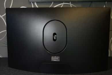 Ein Wort noch zur VESA-Aufhängung: Hier kommen 75 x 75 mm Bohrungen zum Einsatz an die du gelangst, wenn du die ovale Platte an der Rückseite abnimmst.