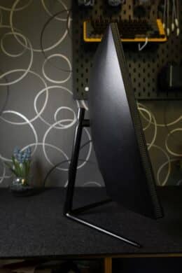 Die Verarbeitungsqualität des Monitors können wir schnell abhandeln. Diese liegt, gemessen am Preis, auf gutem Niveau und ist minimal hochwertiger als im Falle des flachen Geschwisterchens. Spaltmaße fallen deutlich geringer aus, scharfe Kanten oder Ungereimtheiten konnten wir keine ausmachen. Das passt alles.