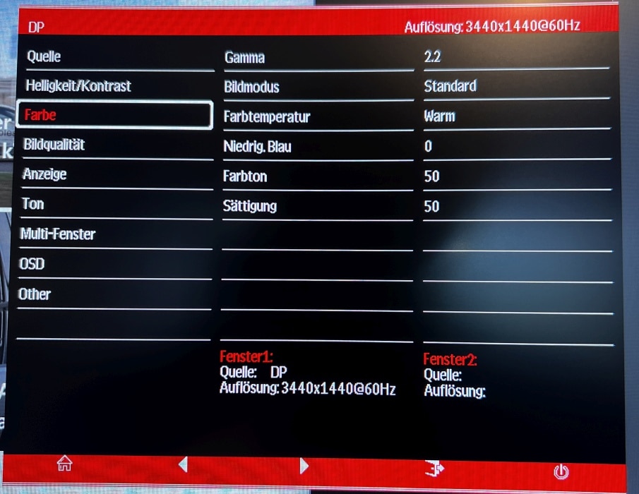Verzichtet wird hingegen auf verbaute Lautsprecher. Okay, braucht man jetzt nicht wirklich. Nur komischerweise hat das dem Monitor offenbar niemand gesagt, denn das On-Screen-Display (OSD) bietet einen eigenen Unterpunkt zu Ton-Einstellungen.
