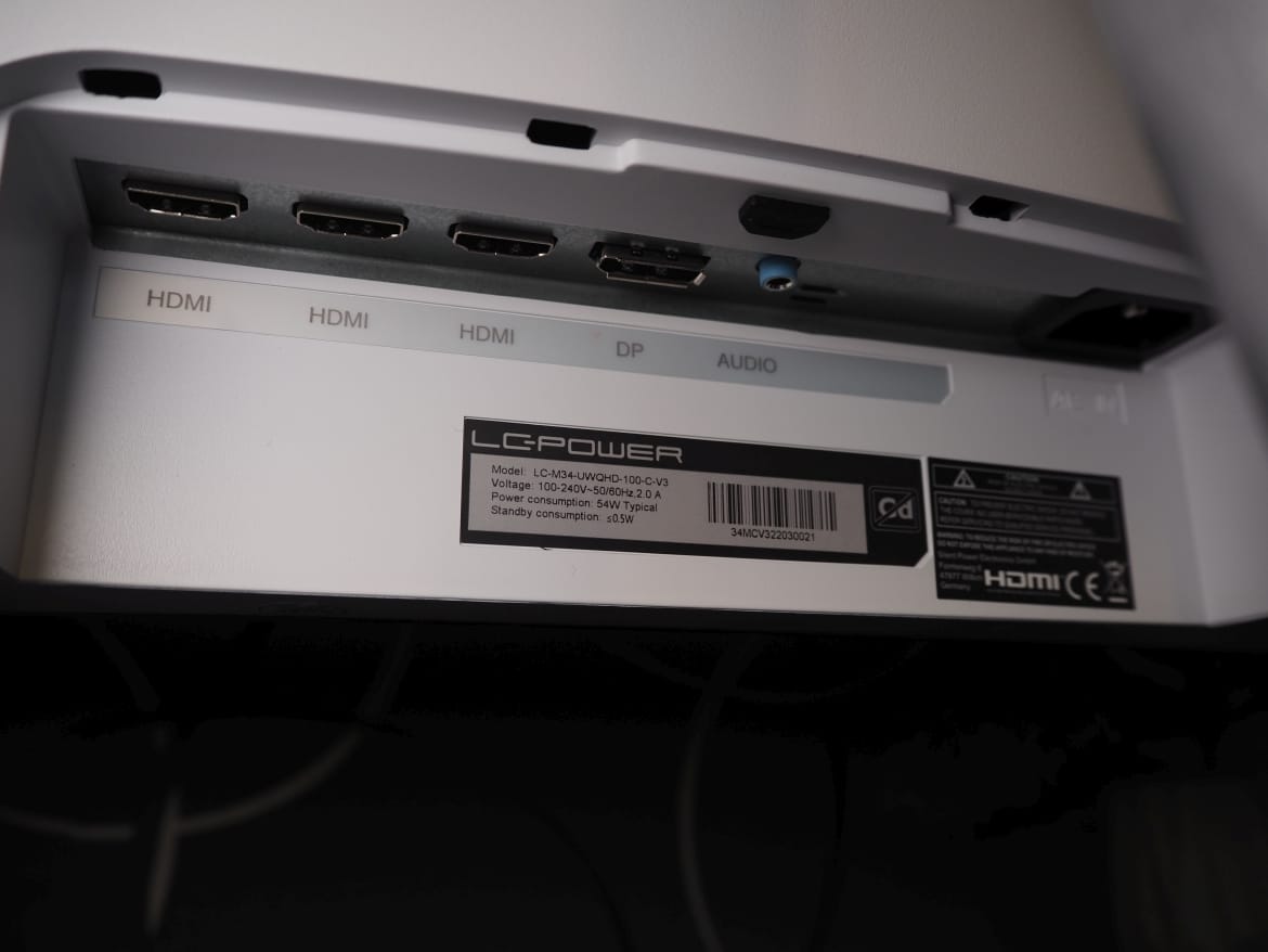 Die Auswahl an Anschlüssen habe ich ja bereits abgehandelt. Hier hat sich im Vergleich zum Vorgängermodell leider nichts getan. Dabei zeigt sich, dass es sich beim LC-Power LC-M34-UWQHD-100-C-V3 um ein Budget-Modell handelt, immerhin wird weiterhin auf den schnelleren DP 1.4-Standard verzichtet. Ganz zu schweigen von HDMI 2.1.