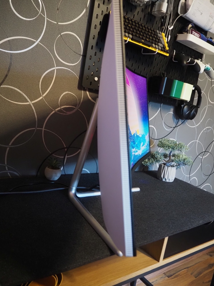 In Kombination mit dem schicken Design und der recht hochwertigen Verarbeitung zeichnet sich ein positives Gesamtbild ab. Schade ist hingegen, dass man hinsichtlich der Ergonomie-Optionen gespart hat und die Neigungswinkel nach oben und unten zudem äußerst begrenzt sind.