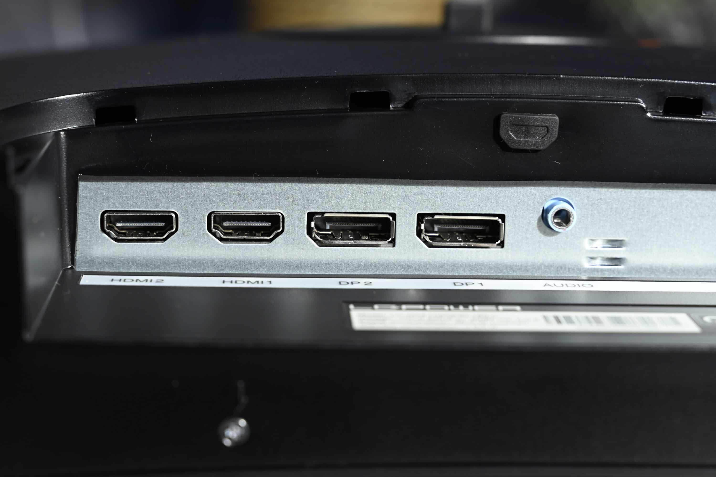 Dabei geht die Port-Auswahl in Ordnung. Zweimal HDMI 2.0 und zweimal DisplayPort 1.4 stehen für die Bildausgabe zur Verfügung, ein 3,5-mm-Klinkenanschluss kommt noch hinzu. Auf einen USB-Hub verzichtet der Monitor jedoch konsequent.