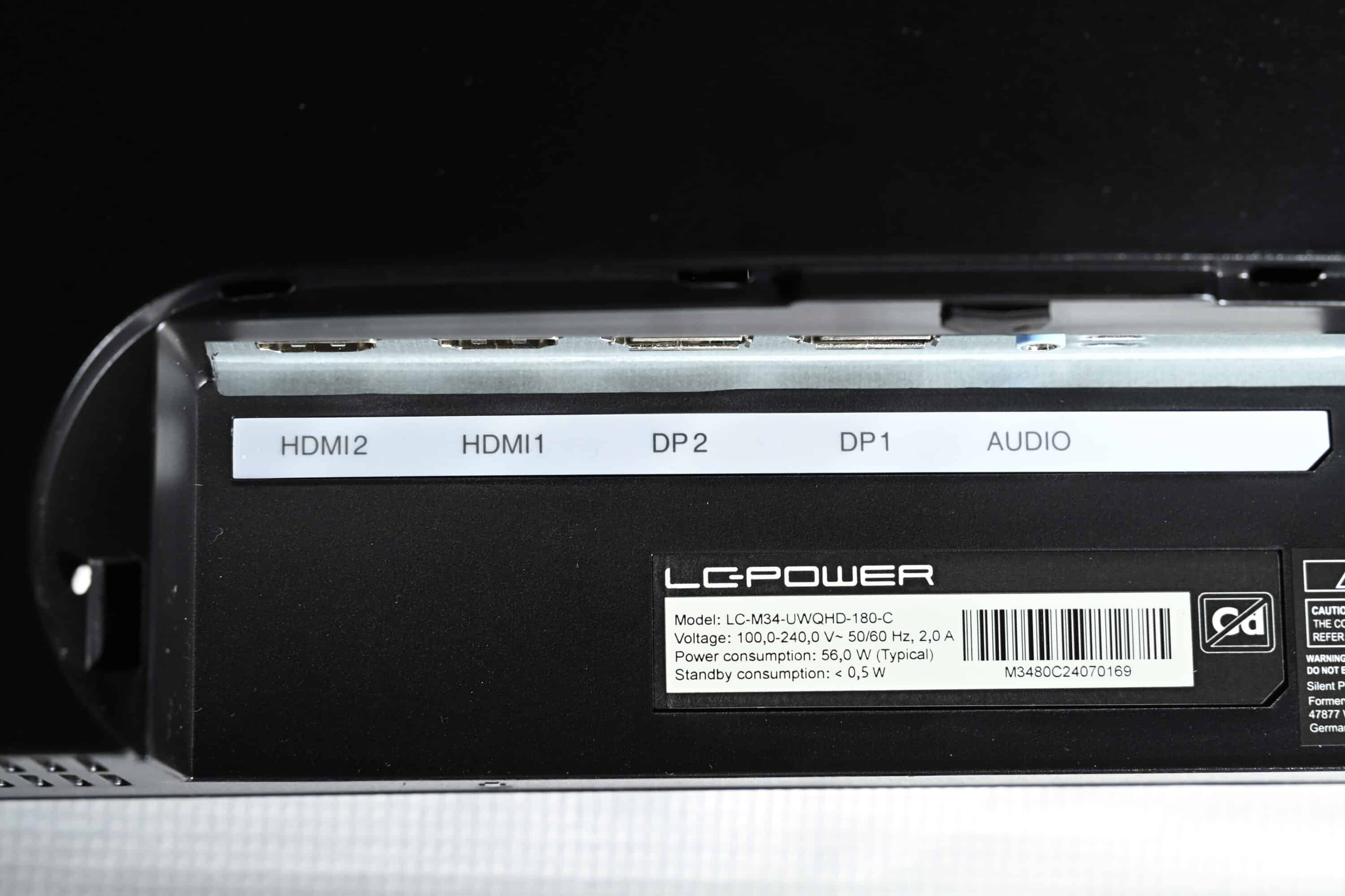 Die Anschlüsse des LC-POWER LC-M34-UWQHD-180-C finden mittig an der Rückseite Platz. Diese werden zudem durch eine abnehmbare Abdeckung geschützt, die du nach dem Anschließen wieder anbringen kannst, wenn du magst.