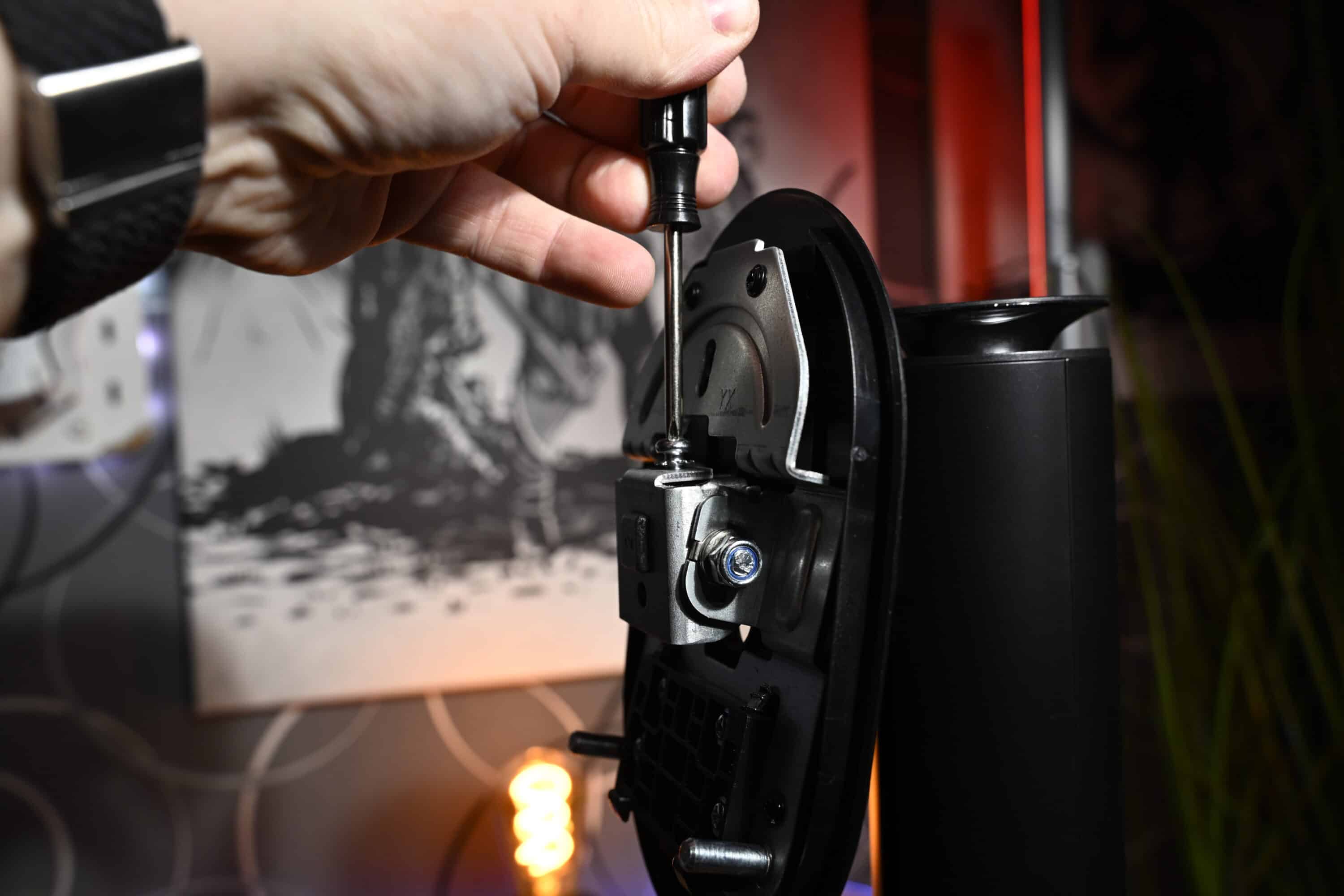 Außerdem gibt es Montageschrauben für die VESA-Halterung, sowie einen Schraubendreher und Kreuzschlitzschrauben, denn der Monitor lässt sich leider nicht ohne Zuhilfenahme von Werkzeug zusammenbauen. Ist aber auch nicht weiter tragisch, denn der Aufbau geht dennoch äußerst fix vonstatten: Standfuß und Halterung verschrauben, in die Rückseite des Displays einsetzen und los geht’s.