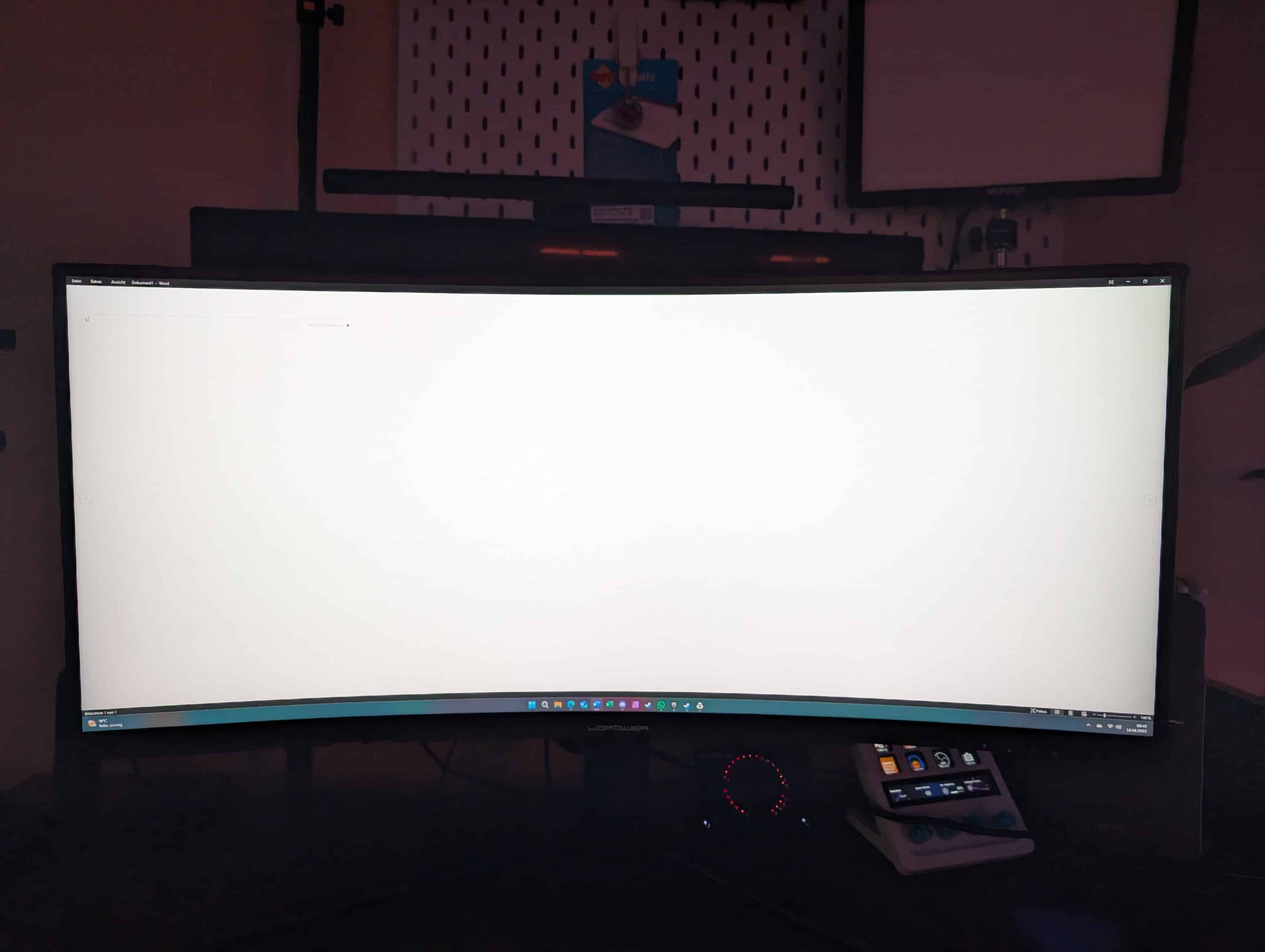 Im Desktop-Betrieb sieht die Sache jedoch etwas anders aus. Bei niedrigen Kontrasten zeigt sich deutlich, dass der untere Bereich wesentlich heller dargestellt wird als der obere Rand. Hier scheint es Probleme bei der Uniformität der Ausleuchtung zu geben – was sich dann auch im Labortest bestätigen sollte (aber auf Fotos nur schwer einfangen lässt).