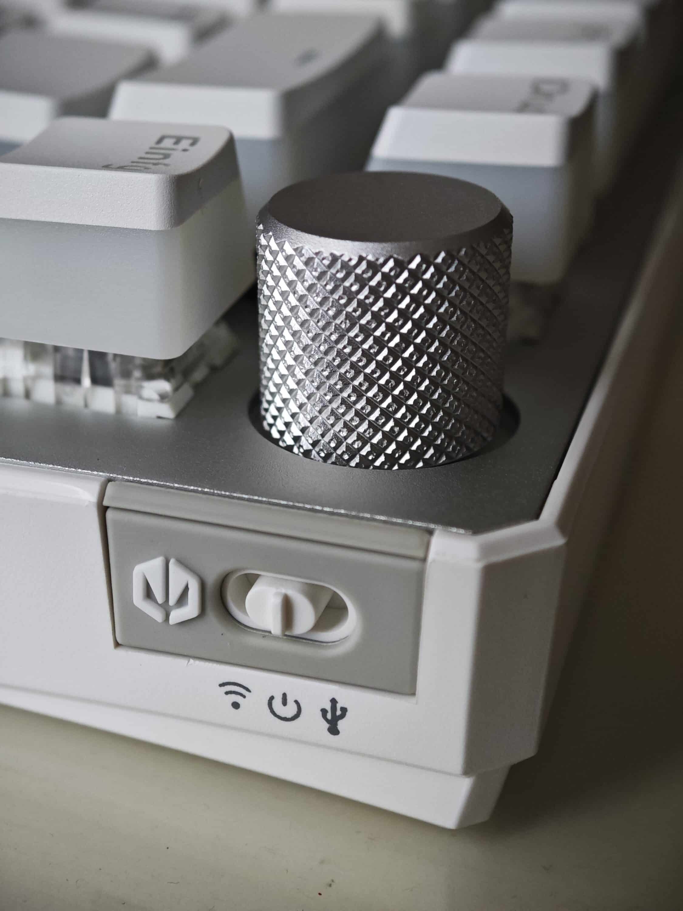 Grundsätzlich hätte ich mir eine andere Darstellung des Akkustandes gewünscht. Die rote LED hätte durchaus auch woanders auf der Tastatur angebracht sein können. Irgendwo, wo sie einem nicht so direkt ins Auge fällt. Eine permanent leuchtende LED, die z.B. durch ihren Farbton jederzeit den aktuellen Akkustand signalisiert. Etwas seitlich angebracht, oder am / im Lautstärke-Rad. Das würde ich persönlich besser finden.
